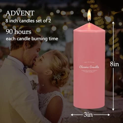 Return Policy Fast Delivery Trusted seller Pink Pillar Candles for Romantic, 3x8 Inch Unscented Column Candles for Spa Church Weddings, Non-Toxic Smokeless and Dripless Hand Poured Emergency Candle Product Description Hand Poured, 100% Cotton Wicks, Non-toxic, Smokeless, Dripless and Clean-Burning Unscented Pillar Candles making them perfect for a clean burning for those who are sensitive to scents. Burn Time: 90 hours. Exact Dimensions: 3" (W) x 8" (H) Because of its extended burn-time. Our candles can be re-used numerous times. Set of 2 candles makes a great gift for any occasion, or you can keep them for yourself to enjoy. Shipping Returns Payment Shipping Shipping is FREE to all addresses other than APO/PO boxes in the lower 48 states. All our stock ships from US-based warehouses. Shipped via USPS or UPS (depending on location and package weight) Unless stated otherwise, all orders will ship within 24-72 hours of your payment being processed. Check our feedback to see the great reviews of FAST shipping we offer. Returns Seller does not accept returns Payment We currently accept payment via eBay managed payments only. Once payment is cleared, we will dispatch your shipment within 1-3 business days. Please refer to the "Shipping" tab for more information regarding shipping speed to your destination.