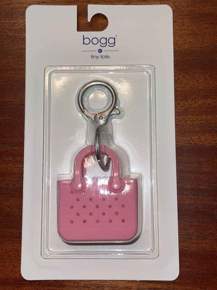 Bogg Tiny Tote Keychain / Bag Charm New in Clamshell Packaging Color: Watermelon Pink A tiny Bogg for your keys—made to clip, carry, and collect. Bag measures: 2"W x 1"D x 2.5" H Total Length with Clip 4.5"