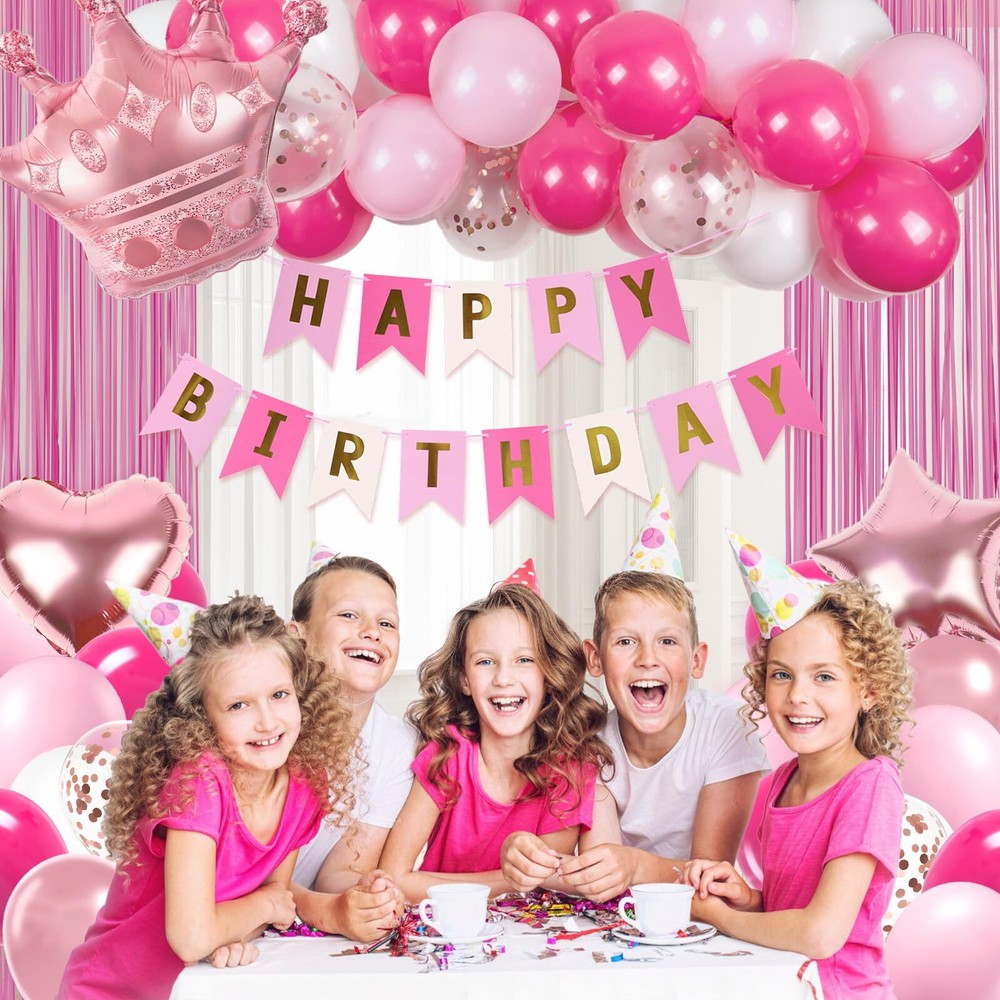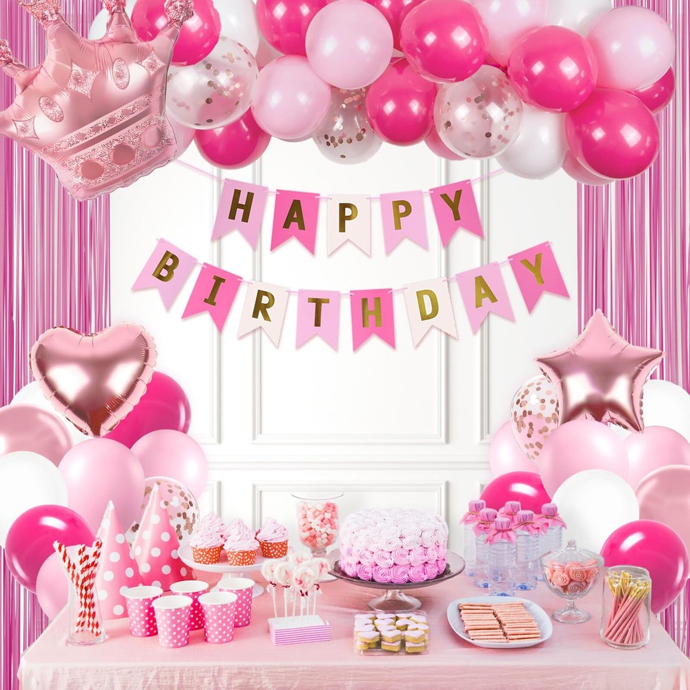 Package Included: The pink happy birthday decorations kit include 10inch hot pink balloons x15, 10inch light pink balloons x10, 10inch white balloons x10, 10inch metallic rose gold balloons x5, 12inch rose gold confetti balloons x3, hot pink happy birthday banner x1, foil balloon x3, hot pink fringe curtains x1, glue dots x60, pink ribbon x1 Full Birthday Decoration Set: The all-inclusive hot pink party decorations set includes a Happy Birthday banner, fringe curtains, and balloons. Great for creating a backdrop or photo booth for celebrations Easy to Use: The pink birthday party decorations bring charm to your party, creating unforgettable memories. The hot pink birthday decorations for women includes glue dots and ribbons for easy balloon arch setup. Hang banners and balloons on walls, windows, or any indoor or outdoor space you like Suitable Occasion: The pink happy birthday decorations kit is great for many happy birthday decorations, that include pink birthday decorations for adults and women, can be used as 16th, 18th, 21st, 25th, 30th, 40th, 50th, 60th, 70th birthday party decorations Warm Tips: If there are any issue with the women birthday decorations set, we will work hard to solve them until you are satisfied
