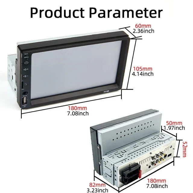 Specification: Bluetooth 2.0 Supports advanced audio distribution profile Off-time display function High quality digital FM stereo radio Preset 18 stations ( frequency: 87.5-108 MHz ) Supports USB / SD / MMC card reader Supports Audio: MP3 / WMA / APE / FLAC / WAV etc. Supports folder function Supports break points and ID3 Play Supports remote control Rotary volume controlMP3 randomized, 10 track up / down playback Electronic control volume treble, bass, balance and fader Multiple EQ scene selection: Jazz, rock, pop, classical, etc. Mute and loud controlL / R RCA audio output jacks4-channel high power output ( 4 loud speaker ) Supports modes: BT / APE / WAV / WMA / MP3 / FM The remote control battery (not included): CR2025 3V Power Supply: 11 - 16V Transmitter frequency: 2468MHz Power output: 100mW Video in / out: PAL / NTSC composite video signal Working temperature: -20 - 70 degree Receiver sensitivity: -93dbm Input voltage: 12V