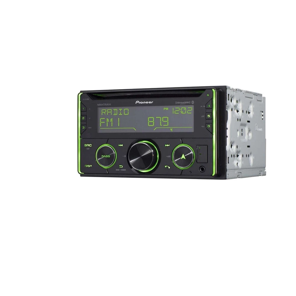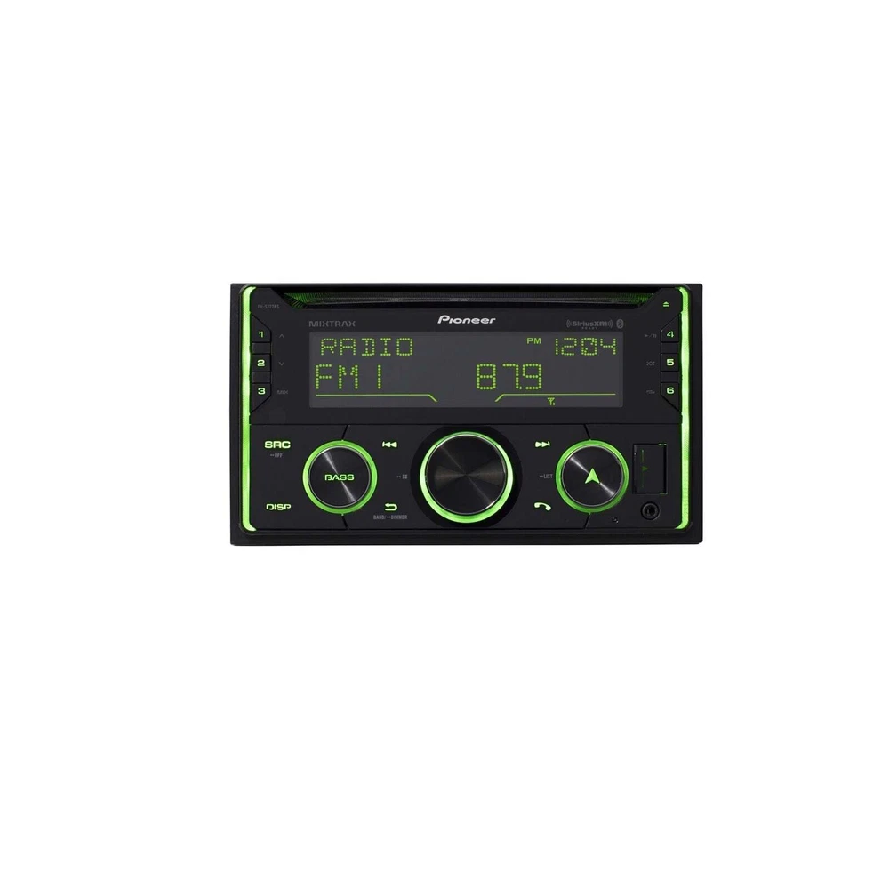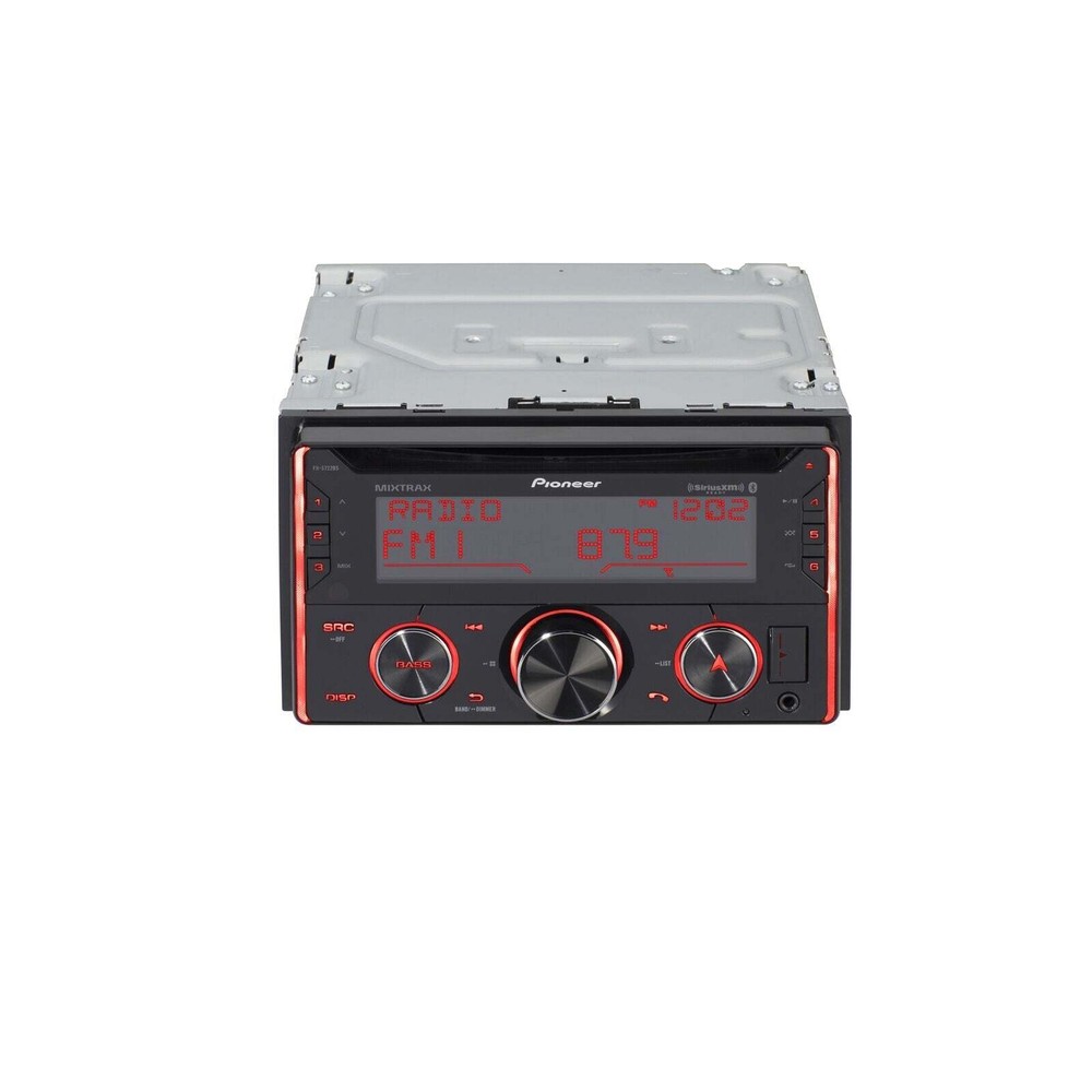Pioneer FH-S722BS Double DIN Sirius XM Bluetooth Car Stereo CD In-Dash Receiver + 2 pair TS-G1620F 6.5" 300Watt Speakers General Features: Pioneer FH-S722BS In-Dash Receiver CEA-2006 compliant Power Output: Peak: 50 watts x 4 channels RMS: 22 watts x 4 channels CD text information display Works with Pandora® and Spotify® SiriusXM-Ready FLAC Codec Support MP3 ID3 Tag Display (Title/Artist/Album) AM/FM tuner with 18FM/6 AM presets Remote control included Authorized Internet Dealer 1 year manufacturer warranty Playback and Audio Features: CD/CD-R/RW, DVD/DVD-R/RW, MP3/WMA/AAC Playback Compatible with Apple iPhone 6/6+ and iOS 8 software 13 Band EQ+ 31 Band with Pioneer Smart Sync 3.5mm front Auxiliary Input jack Front USB Input 3 Sets of 4V preamp outputs (front, rear, and subwoofer) Bluetooth Features: Built-in Bluetooth technology for hands-free talking and audio streaming Bluetooth Profiles Supported: HFP: Hands-Free Profile allows a hands-free car kit to connect to a compatible mobile phone HSP: Headset Profile enables a Bluetooth headset to connect to a compatible mobile phone PBAP: Phone Book Access Profile allows the car stereo to display the name of the incoming caller, as well as access the contact list of the mobile phone directly from the car stereo A2DP: Advanced Audio Distribution Profile allows high-quality audio to be streamed from an audio device to the car stereo AVRCP: Audio/Video Remote Control Profile supports basic remote control functions (play, pause, etc) via Bluetooth OPP: Object Push Profile for sending basic "objects" such as pictures and other virtual material SYNC: Synchronization Profile enables the synchronization of Personal Information Manager (PIM) items SPP: Serial Port Profile provides a wireless replacement for RS-232-based serial communications Works with most Bluetooth-enabled cell phones Includes a (external wired/built-in) microphone for clear, convenient, distortion-free talking Maximum communication rage: 32.8 feet (approx, line of sight) Pioneer TS-G1620F 6-1/2" coaxial speakers (2 pairs) Max. Music Power (Nominal): 300W (35W) Design: Coaxial 2-Way Size: 6-1/2 Tweeter Design: 1-3/16" Balanced Dome Woofer Composition: Injected Molded Polypropylene (IMPP) with MICA Woofer Magnet Composition: Ferrite Woofer Surround: Rubber Coated Cloth Frequency Response: 31 Hz to 18 kHz Impedance: 4 Ohms Mounting Depth 1-3/4" (in.) Warning: This product can expose you to, known to the State of California, to cause cancer. For more information, go to P65Warnings.ca. ov.