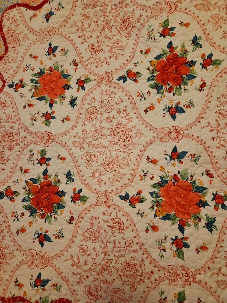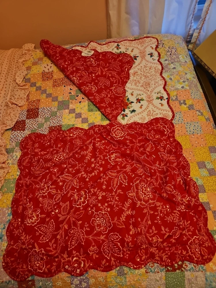 Size approx 30 x 22 Back side is red side. It has button closures Clean, no stains. See photos for best description.