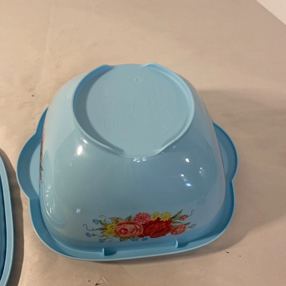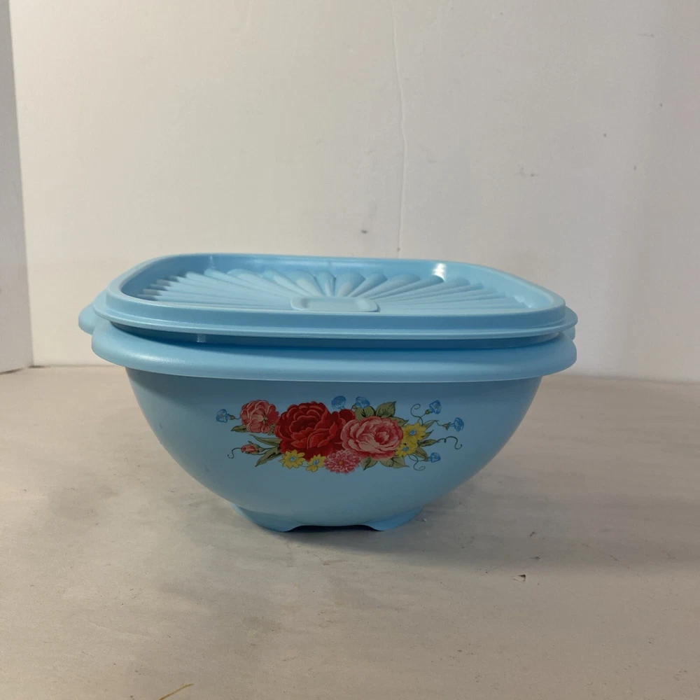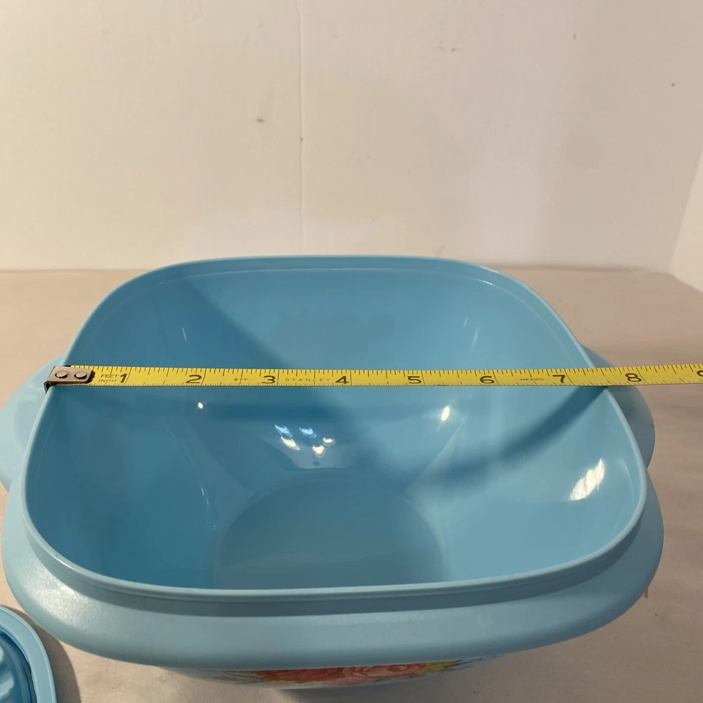 Color:Turquoise blueCountry/Region of Manufacture:ChinaShape:SquareLid Type:Snap LidType:Storage BowlItem Length:8 inItem Height:4.5 inPattern:FloralNumber of Items in Set:1Material:PlasticTheme:RoseItem Width:8 inFeatures:Reusable, With LidBrand:Pioneer Woman