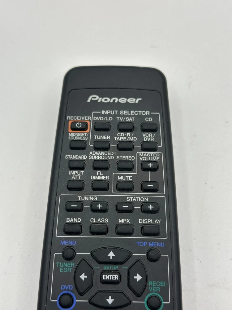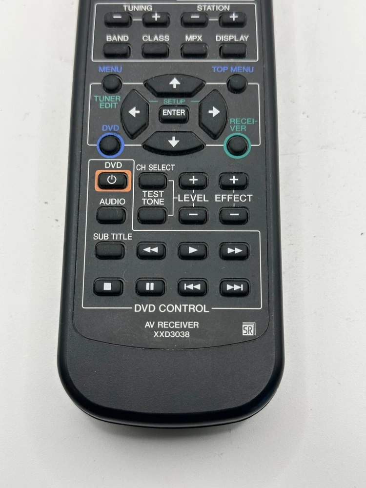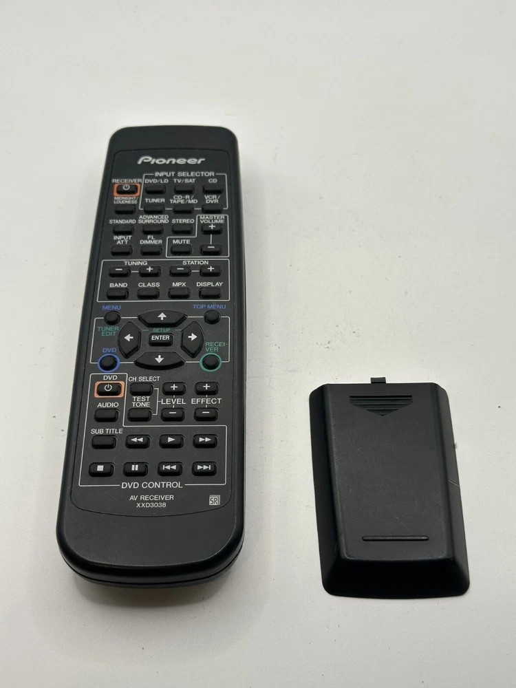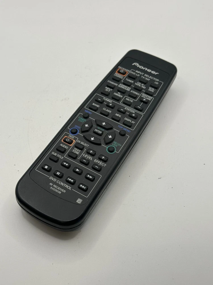 Elevate your home entertainment experience with the Pioneer XXD3038 Remote Control. Specially designed for Pioneer AV receivers, this ergonomic black handset offers a seamless user interface with wireless infrared connectivity. Its intuitive layout and responsive buttons ensure that all your device functions are just a click away. Crafted for durability and simplicity, the Pioneer XXD3038 comes from the reputed house of Pioneer, guaranteeing reliability and a snug fit with compatible Pioneer models. Manufactured in Malaysia, this remote control is a perfect addition to your audio-video equipment, completing your media control setup with ease and style.