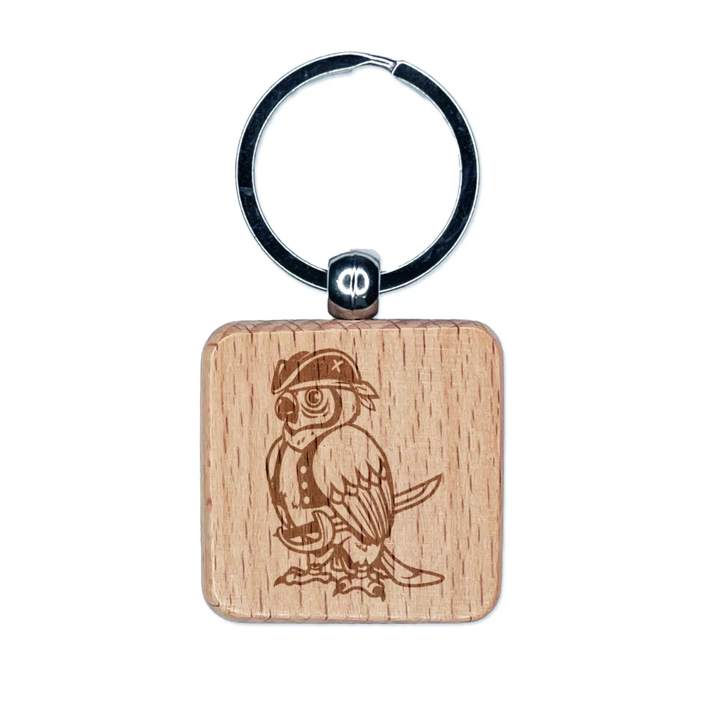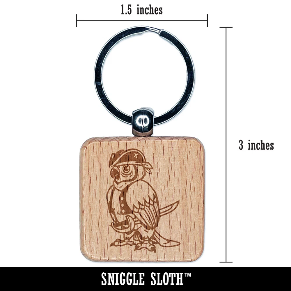 Pirate Parrot with Sword Engraved Wood Square Keychain Tag Charm