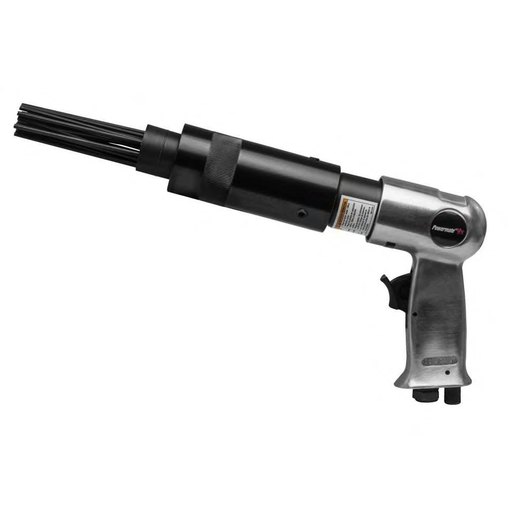Equipped with 19 steel needles for effective scaling action Professional touch trigger for better start/stop control Soft-touch grip for firm hold and reduced vibration The Powermate Vx air needle scaler is a durable and versatile pistol type needle scaler. It is perfect for surface preparation involving the removal of rust, dirt, paint and weld slag from hard metal surfaces such as cleaning tractor parts. It is equipped with 19 steel needles for effective scaling action. Cleans smaller surfaces without messy abrasive blasting Soft-touch grip for firm hold and reduced vibration Professional touch trigger adds comfort and gives user better start/stop control Handle exhaust keeps heat away from work surface For compact storage needle head removes easily Lightweight aluminum housing
