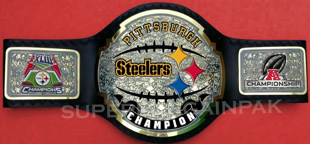 Welcome to our shop ------------------------------------------- We are specialist in manufacturing handmade products:: Our wide range of products include: >>>>Championship Belts WWE | WWF | AEW | UFC | WBC | WCW Product Description ** Pittsburgh Steelers Championship Belt *** Plate Metal: Brass (Zinc available on request with additional cost) Strap: 100% Leather Largest Waist Size: Fits upto 46'' Belt Length: ~50" Weight: 4.17 lbs | 2.01 Kg Plate Thickness: 2mm (4mm Version available on demand with additional cost) ::The belt is well crafted and manufactured to meet the quality demands of fans:: Get your hands on this marvelous piece now! Note: If you need further details kindly inbox us, we will try to be as responsive as possible. ------------------------------------------- Return Policy: Generally we don't have much complains on our products and we make sure to 100% satisfy our clients. We send the product in well Bubble Wrapped packaging so there is highly unlike chance of getting damaged item. In case there is a damage, we will try to give partial refund or you can ask for full refund within 30 days after returning the belt to origin. NOTE: 1. If you have placed the order by mistake or you have purchased a wrong item then we are not going to refund that. 2. Buyer will pay the shipping fee of returning the belt. ------------------------------------------- Happy Shopping! :)
