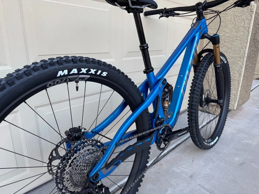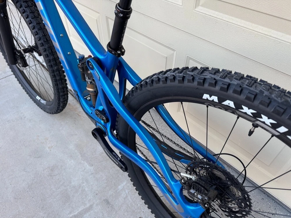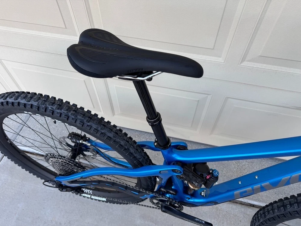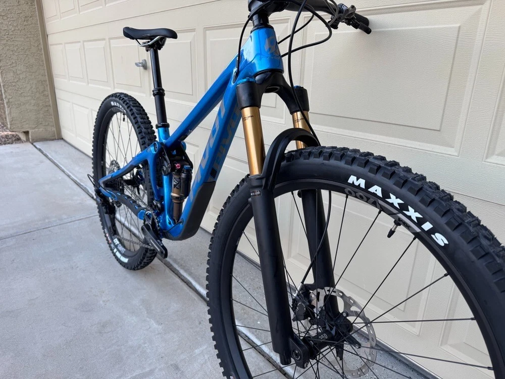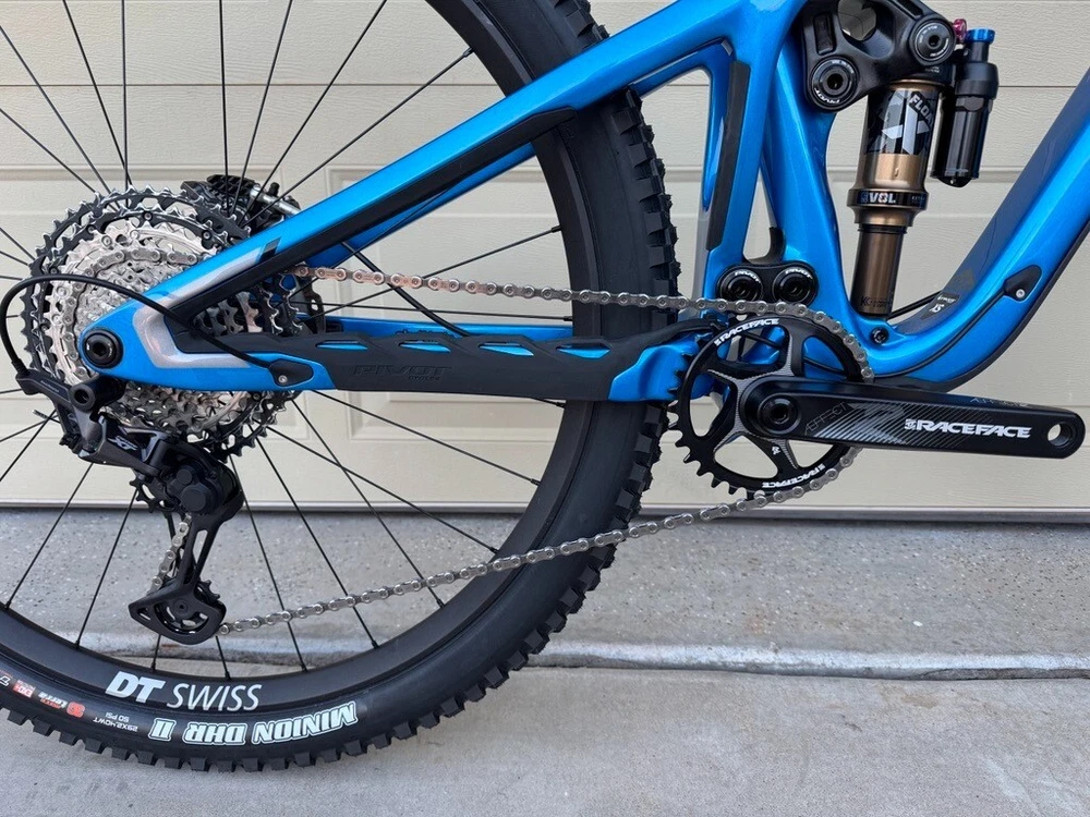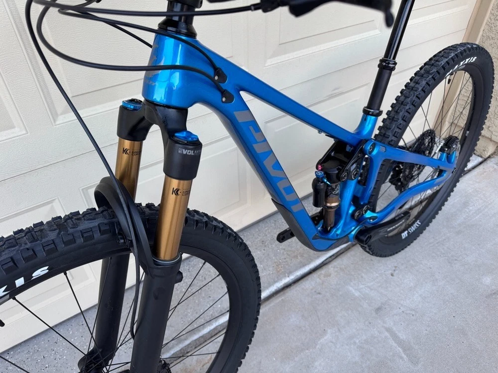 This is a brand new, never ridden, Switchblade v5 frame (2023) that I built up for my wife. She told me just to sell it because she is ALWAYS going to ride her Shuttle SL :) I want to be clear that the fork and cassette and brakes have been used--these three pieces came off of my Switchblade with 2-3 months of use on them; otherwise it is a new bike. Here is the rundown: Fox Factory 36 fork with Grip2 damper (160 mm) paired with a Fox Factory Float X rear shock. The DT X1700 wheels are wrapped in Maxxis DHRII 29x2.4" tires. The drivetrain is: Race Face Aeffect R crankset; Shimano XT chain, shifter, and derailleur (all new) with an XT cassette (used). It has a Fox Transfer (125 mm) dropper (with a Wolf Tooth dropper lever), with Pivot cockpit (bar, stem, saddle, grips). Please understand that this NO RESERVE AUCTION is for the Lower 48 states only. Please make payment or communicate with me within 48 hours of auction closing--I will have the bike carefully packed and shipped within 24 hours of receiving payment. Good luck, and please message me with any questions.