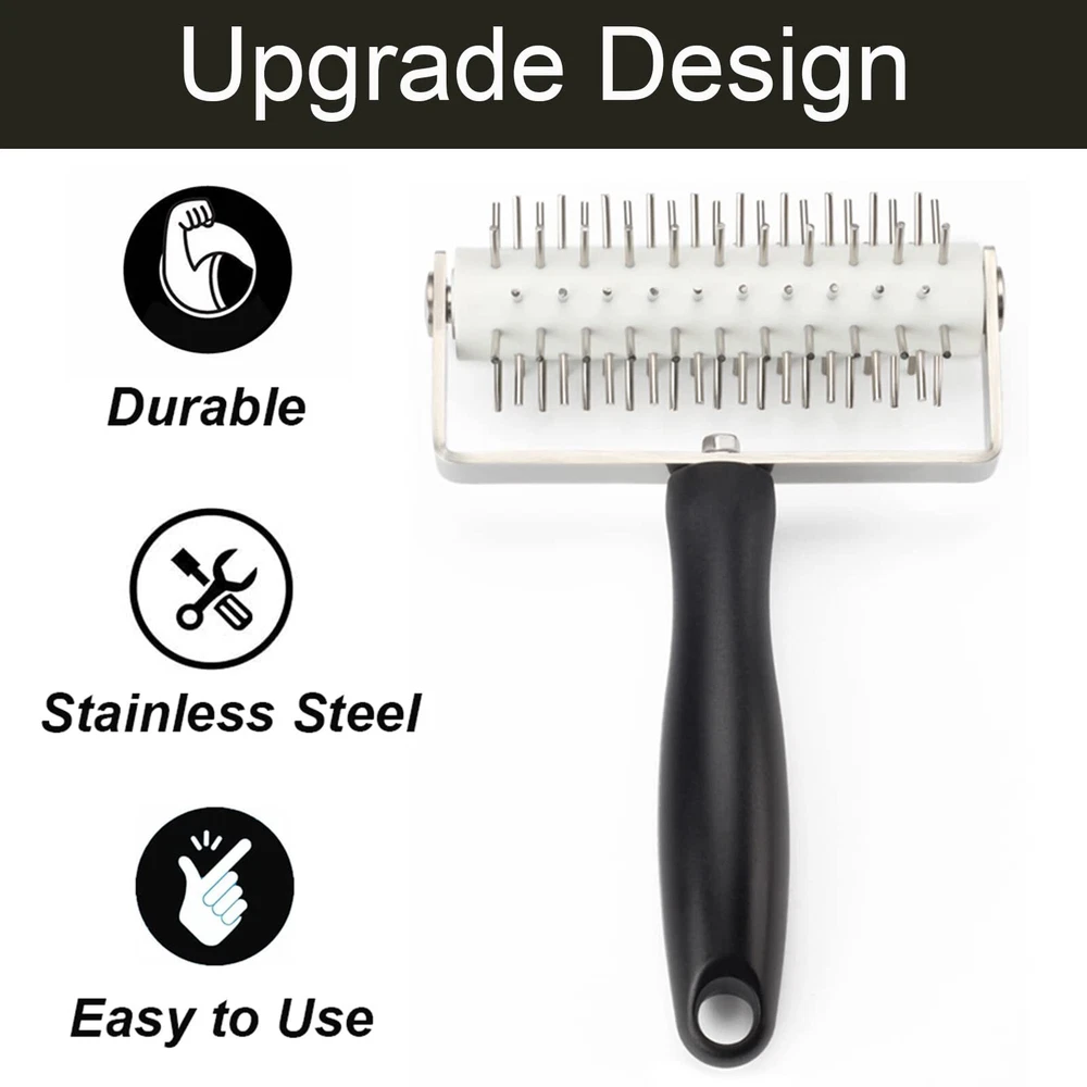 Premium Material: Our dough docker roller with a solid plastic handle. Pins are made of Food stainless steel material. Sturdy and durable dough docker will last longer Wide Application: Our dough hole maker is suitable for making pizza crust, pastry, pie crusts, biscuit and etc. Roller docker helps avoiding the air pockets formation on dough Time-saver Pizza Docker: Dough docking tool save your time and effort by speeding up the process of dough holes. You can easily make a delicious baking food Dimension: Overall length 8.1 inches and 5.3 inches wide plastic roller. Pin length: 5/8 inch. Our pizza dough docker have 10 gears with 10 or 11 pins on each gear for easy punching Great Pizza Making Gift: Bakers and cooking enthusiasts will love this clever spike roller in their process of making pizza. It is attractive and practical present for your parents, neighbors, Thanksgiving, Christmas, housewarmings, birthdays, mother's day, father's day or other special days