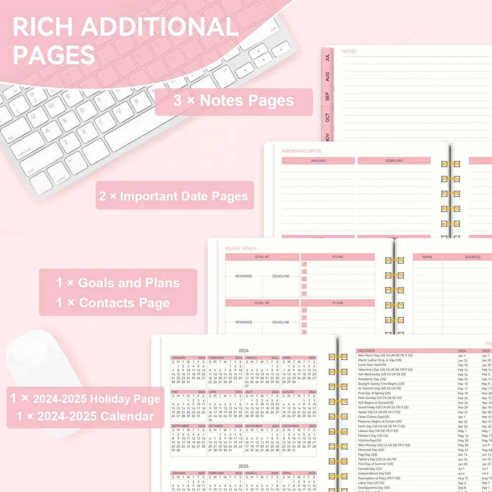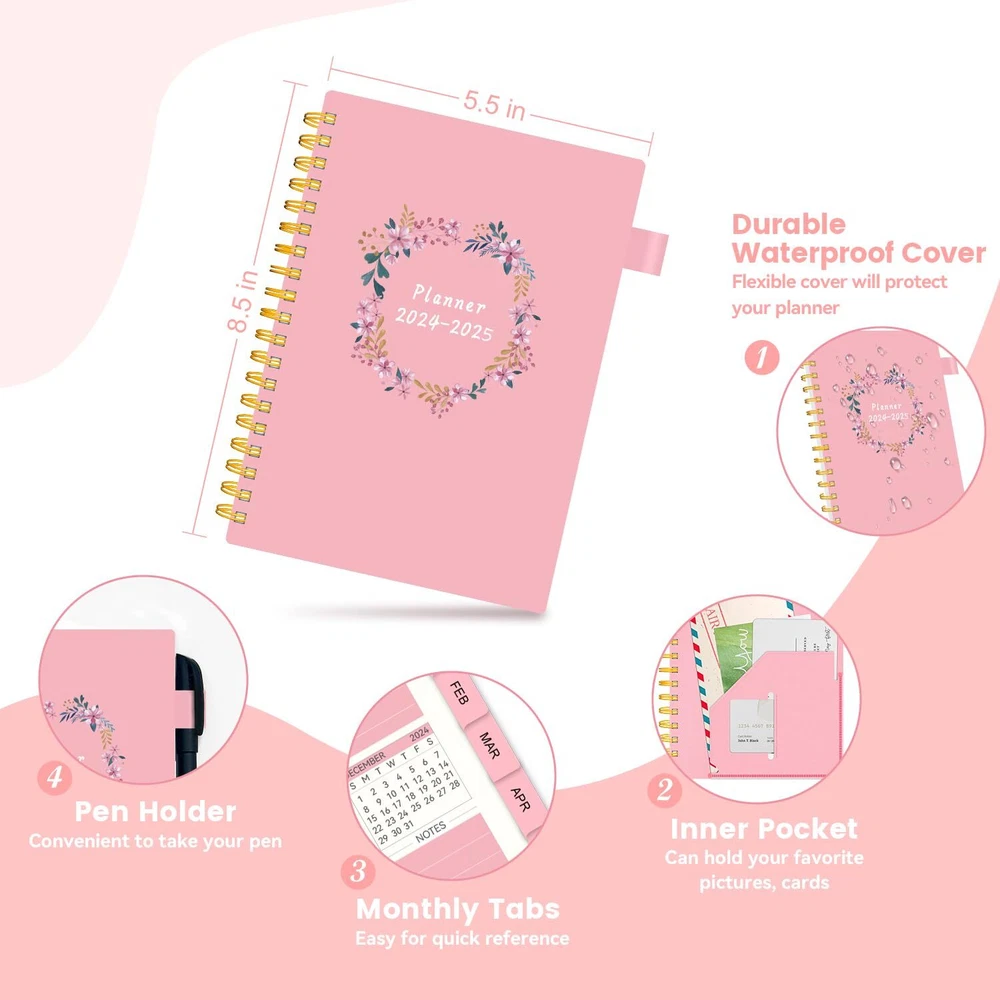 Planner 2024-2025 Weekly and Monthly, Academic Planner runs from Jul.2024 - Jun.2025, AIMPEAK Calendar Planner for Women, Monthly Tabs, Spiral Binding, Pink Garland, 5.5"x8.5" 📒Functional 2024-2025 Planner: This academic planner can help to increase your productivity and achieve your goals. Designed from Jul.2024 - Jun.2025, featuring 12 months of monthly and weekly pages for easy year-round planning. Functionally designed additional pages including 2024-2025 calendar overview, personal information, goals and plans, important dates page, 2024-2025 holiday pages, contact pages and notes pages. 📒Clear Monthly Overview: Our planner 2024-2025 contains 12 months of monthly pages, ready with monthly tabs for quick reference. Richer content contains monthly goals, to do list, reviews, major holidays listed, elapsed and remaining days noted. Keep track of important deadlines, special events and more of every month with clear organization. 📒Richer Weekly Pages: Weekly view pages contain weekly focus, top priority, follow up, appointment, habit tracker, to do list, grateful for, weekly reviews and notes, enough writing place for your detailed daily planning, appointments and activities. Stay organized and motivated each day and week, improve your productivity with this 2024 weekly and monthly planner. 📒Superior Quality:This calendar 2024 planner uses flexible cover, waterproof, can protect all the sheets inside well. The twin-wire binding helps the daily planner to stay flat when open so it's easier to write. The weekly planner contains a inner pocket to store small objects and a pen loop for convenience. High-quality acid-free paper, helps to reduce ink-bleeding and always provide great writing exprience. Excellent texture, with classic and stylish combinations of appearance. 📒After-sale Guarantee: If there are any type of quality issues or if for any reason you're not completely satisfied after receiving our monthly planner, please do not hesitate to contact us, we will be happy to solve your problems as soon as possible. Your satisfaction is our greatest motivation for improvement. 📒Functional 2024-2025 Planner: This academic planner can help to increase your productivity and achieve your goals. Designed from Jul.2024 - Jun.2025, featuring 12 months of monthly and weekly pages for easy year-round planning. Functionally designed additional pages including 2024-2025 calendar overview, personal information, goals and plans, important dates page, 2024-2025 holiday pages, contact pages and notes pages. 📒Clear Monthly Overview: Our planner 2024-2025 contains 12 months of monthly pages, ready with monthly tabs for quick reference. Richer content contains monthly goals, to do list, reviews, major holidays listed, elapsed and remaining days noted. Keep track of important deadlines, special events and more of every month with clear organization. 📒Richer Weekly Pages: Weekly view pages contain weekly focus, top priority, follow up, appointment, habit tracker, to do list, grateful for, weekly reviews and notes, enough writing place for your detailed daily planning, appointments and activities. Stay organized and motivated each day and week, improve your productivity with this 2024 weekly and monthly planner. 📒Superior Quality:This calendar 2024 planner uses flexible cover, waterproof, can protect all the sheets inside well. The twin-wire binding helps the daily planner to stay flat when open so it's easier to write. The weekly planner contains a inner pocket to store small objects and a pen loop for convenience. High-quality acid-free paper, helps to reduce ink-bleeding and always provide great writing exprience. Excellent texture, with classic and stylish combinations of appearance. 📒After-sale Guarantee: If there are any type of quality issues or if for any reason you're not completely satisfied after receiving our monthly planner, please do not hesitate to contact us, we will be happy to solve your problems as soon as possible. Your satisfaction is our greatest motivation for improvement. Shipping from the USA All of our products are shipped from the USA, ensuring quick delivery to your destination. Payment We offer the following payment methods: PayPal, credit card, bank transfer, and eBay's secure payment system. Free Shipping & Free Returns Shipping within the USA is FREE. Additionally, any return is absolutely free for you. Risk-Free Purchase You have the option to return an item within 30 days without any justification. We cover the return shipping costs! Fast Shipping We ship immediately upon receipt of payment. Generally, the package is delivered within 2-3 days in the USA. If it takes longer, we will contact you. Quality and Costs Made in Europe, USA, China No customs fees or additional charges Total satisfaction guarantee Invoice with declared VAT available upon request in .pdf format Feedback Your feedback is very important to us. After you pay for your purchase, you will automatically receive positive feedback from us.
