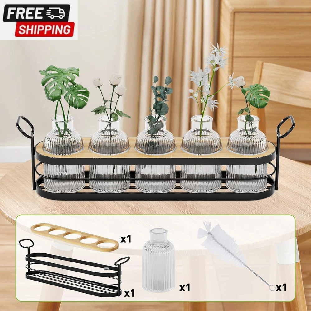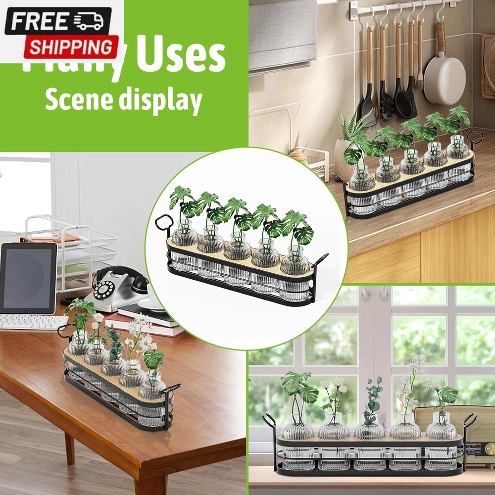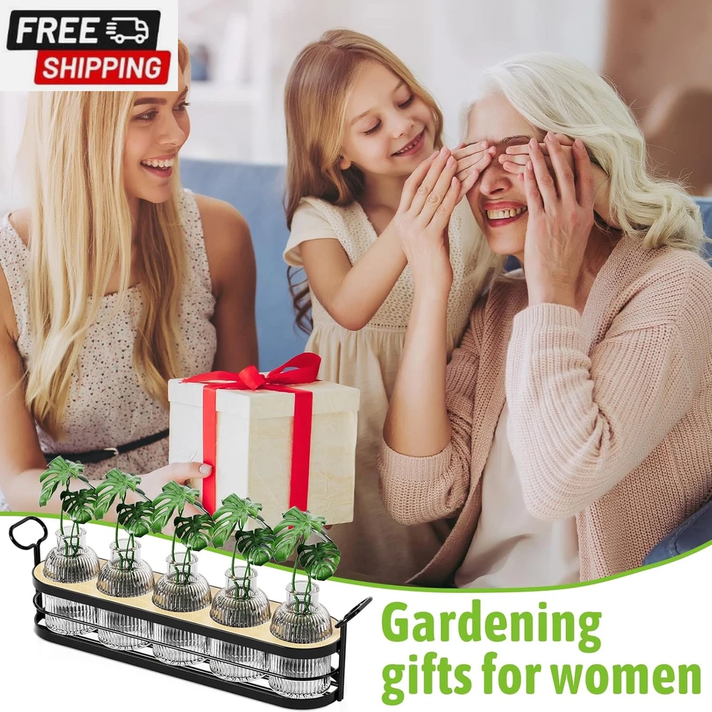 Plant Propagation Stations,Plant Terrarium for Propagating Hydroponic,Glass Planter Flower Vase for Hydroponic Plants,Home Kitchen Office Decor, Plant Lover Gifts for Women with Metal Stand 【BEST GIFT】This propagation stations can perfectly enhance the appearance of any table. You can give it to your own or send it as a gift on Anniversaries, Birthdays, Weddings, Housewarming, Thanksgiving, etc. They are lovely gift for friends or family. 【THICK &STURDY GLASS】These flower vases are made of thick and strong glass, which is durable and not easily broken. The patterned surface treatment makes them look very textured and makes them shine under the light. Feel the nature inside your home and make your home beautiful.If you receive a damaged vase, please contact us immediately, we will replace it with a new one or give you a refund. 【Plant Rooting Station】This minimalist and stylish planter terrarium works well for propagating house plant cuttings. no assembly required The propagation is already assembled and ready to use. 【DIY Plant Decoration】With its elegant and retro appearance, paired with plants and flowers you like,this hydroponic plant stand will be a chic addition to a small space. adding natural green and freshness to your life. 【Item Information】Package includes: a black metal stand , 5 glass bottles, a bamboo,a cleaning brush, note: plants are not included, the glass bottle is 100ML, the bottle mouth size is 0.8inch Product Description Shipping Fast shipping is very important for us. Our standard US shipping service is FREE. Your order will be shipped within 2-3 business days upon full payment received. Your order will be delivered within 2-3 business days after the handling time. We only ship to the confirmed PayPal address. We reserve the right to cancel any order for any reason at any time. We are not responsible for undeliverable addresses. Returns and payment We offer a 30 days return policy from checkout winning date. We allow only PayPal as payment method FeedBack Your feedback very important to us, after you get your package and you are satisfied with our service please leave us positive feedback If you have any problem with your order / any questions please before leave any type of feedback For any questions, using eBay contact system Please visit our eBay store to check out other items for sale! Thank you for shopping at our store.