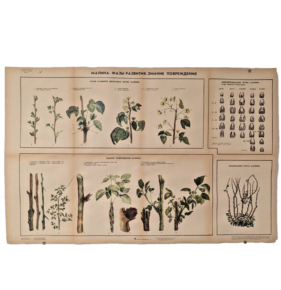 🌻 Plant Vintage Poster 1985 🌿 Soviet Boho Style 🌳 raspberry growing process