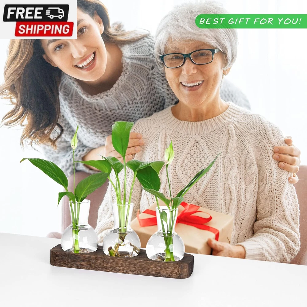 Plants Propagation Stations,Plant Terrarium with Wooden Stand Wall Hanging Glass Planter Plant Propagation Vase for Indoor Office Home Garden Decor Plant Lover Gifts for Women 【Plant Propagation Stations】This desktop propagation vases for plants is perfect for hydroponics, air plants, and flowers, and it also helps purify the air and create a relaxing atmosphere. Who likes plants and enjoy life will love it at a glance. 【Stylish Design】The groove design of the wooden tray is combined with a flat bottomed light bulb vase. Compared to other wall mounted bulb vases, it does not restrict plant growth and is easier to carry and exchange water. 【Retro Home Office Decor】Simple and elegant style plant propagation suit any style room. Add nice touch to your house, put it on window sill, coffee table, living room, ding room, kitchen, dormitory and bedroom. It will be more beautiful and eye-catching if you fill the bottle with colored water or some cobbles. 【Best gifts for women plant lovers】Mother's Day, birthday, Christmas, Valentine’s Day, Thanksgiving gift ideas. Nice present to your nature-loving, gardeners. Sweet wedding party, anniversary, and special occasions decoration gifts. 【Size】Wooden tray: 9.5'' L x 2.8'' W x 1'' H, Vase: 2.8"D x 3.9"H; Opening Diameter is 1.4". No need to install, can be used directly, the product should be placed in the no-sunlight to use.Note: Can not be placed in the sun! 【Service Guarantee】Customers First. We are responsible for any damage during transportation. If you have any questions, contact us through Amazon please. We will serve you wholeheartedly until you are satisfied. Product Description YIBOT Bring green into your life It really is cute,The glass is very clear and sit perfectly into the grooves in the wood base, which adds to the appeal, and the dark wood base has a rustic classiness to it. Gifts for Women This is an perfect desktop glass bulb vase for plant's propagations and cuttings, use to propagate baby plants. It is suitable for display fresh flower, hydroponics plants. Make a great gift for the plant-lover in your life. YIBOT Plants Propagation Stations Plant Terrarium With Wooden Stand Package Contents: 3x Glass Vase 1 x Wooden Tray 3 bottle wooden tray size: 9.5'' L x 2.8'' W x 1'' H Vase: 2.8"D x 4"H Material: Wood, Glass Note: No plants or other decorative objects included in this item! Note: Can not be placed in the sun! Best Gift for Plant lover Desktop Propagation station with retro style great for floral arrangement, home or office decoration as well as various gift ideas. Plant Gifts for Plant Lovers Women Best gifts for women plant lovers,suitable for various festivals such as: Mother's Day, birthday, Christmas, Valentine’s Day, Thanksgiving gift ideas. Shipping Fast shipping is very important for us. Our standard US shipping service is FREE. Your order will be shipped within 2-3 business days upon full payment received. Your order will be delivered within 2-3 business days after the handling time. We only ship to the confirmed PayPal address. We reserve the right to cancel any order for any reason at any time. We are not responsible for undeliverable addresses. Returns and payment We offer a 30 days return policy from checkout winning date. We allow only PayPal as payment method FeedBack Your feedback very important to us, after you get your package and you are satisfied with our service please leave us positive feedback If you have any problem with your order / any questions please before leave any type of feedback For any questions, using eBay contact system Please visit our eBay store to check out other items for sale! Thank you for shopping at our store.