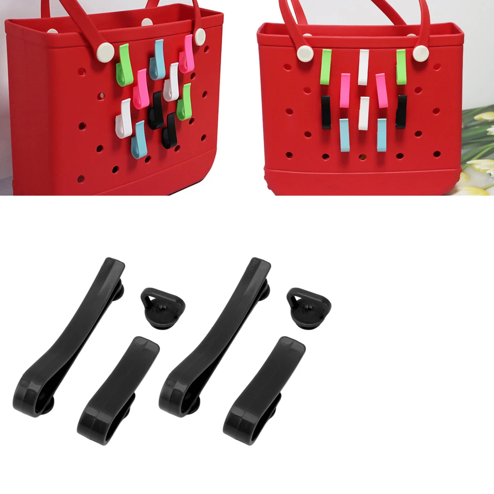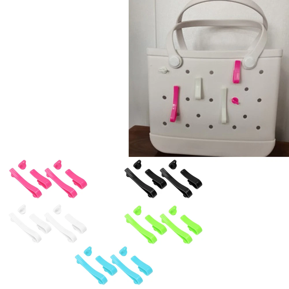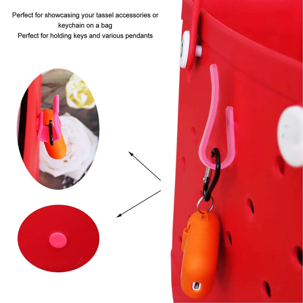 Feature: 1. Showcasing Accessories: These tassel/keychain hooks are perfect for showcasing your tassel accessories or keychain on your bag! Perfect for holding keys and various pendants. 2. Simple Sturdy and : ABS Material: Hooks accessories for bogg bags are made of ABS material, ensuring durability and long lasting performance. 3. Easy Installation: Specially designed for installation inside or outside of rubber beach , ensuring a safe and convenient storage solution. 4. Beautiful and Practical: Vivid colors and patterns add a trendy style to your handbag while keeping it organized on the go. 5. Package Content: 6 piece beach bag accessory set, with 2 large, small, and medium sized accessories each, which can be paired as you please. Specification: Item Type: Hooks Accessories for Bogg Bags Product Material: ABS Weight: Approx. 30g / 1.1oz Package List: 6 x Accessories
