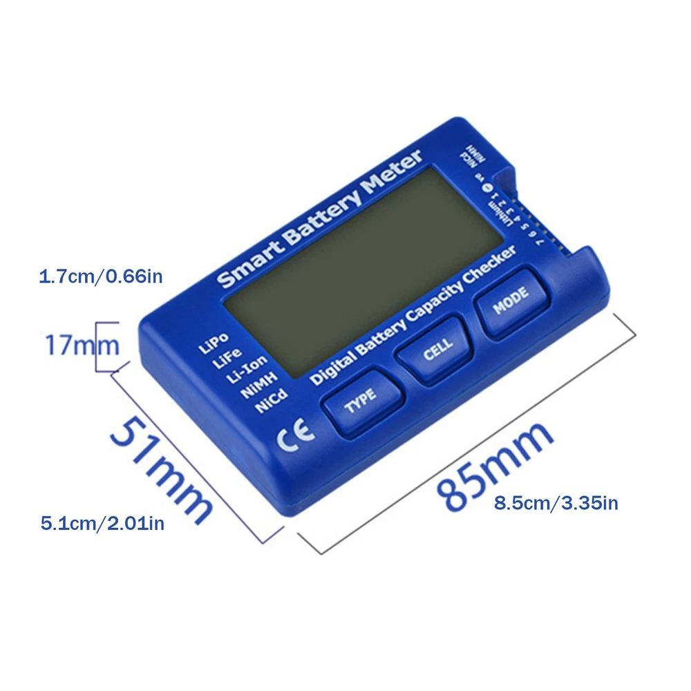 Product Description Features: Made from high quality plastic material, which is not only durable but also stable. Suitable for different battery type, including Lipo & LiFe & Li-Lon & NlMH & NiCd. Press the TYPE button to select LIPO (Lithium Polymer Battery), LIFE (Lithium Iron Battery), and LI-ION (Lithium Ion Battery). Press the CELL button to display the voltage and remaining battery capacity of each battery in turn. Press the MODE button to display the battery voltage, the monolithic voltage, the maximum voltage of the single chip, the lowest voltage of the single chip, and the highest and lowest voltage difference of the single chip. Being able to display the total number and total voltage of 1-7S Ni-MH and Ni-Cd batteries. Can be used as a steering gear tester Specifications: Product name: Digital Battery Capacity Checker Controller Material: Plastic Size: 8.5*5.1*1.7cm/3.35*2*0.67" Color: Blue Battery type: Lipo & LiFe & Li-Lon & NlMH & NiCd Display voltage: 1-24V Package include: 1 * Digital Battery Capacity Checker Controller If you have any doubts or uncertainty about this item, contact us with no hesitation, we are always here and will solve your problems. Thanks and wish you a nice day! About Us We dedicated to provide excellent products and services for all customers on ebay. hope we all can have a nice experiences on eBay. Payment We accept all verified payment through PAYPAL payment. Shipping Usually, Item will be shipped within 1-2 working day after full payment is received. Normally, you will receive the item in 5-7 days. Please contact us if you don’t receive the items after 10 working days after the payment If you have any questions about shipping, please feel free to contact us. Returns Always believe we can solve problems by communication if it comes to any problems about products or any others. If it comes to a return, the products must be intact and as original when you received, and should be within 30 days after you received it. Contact Us Work time: 9:00 AM to 18:00 PM Beijing Time You can contact us at anytime you want, we will reply all messages at the first time. powered by