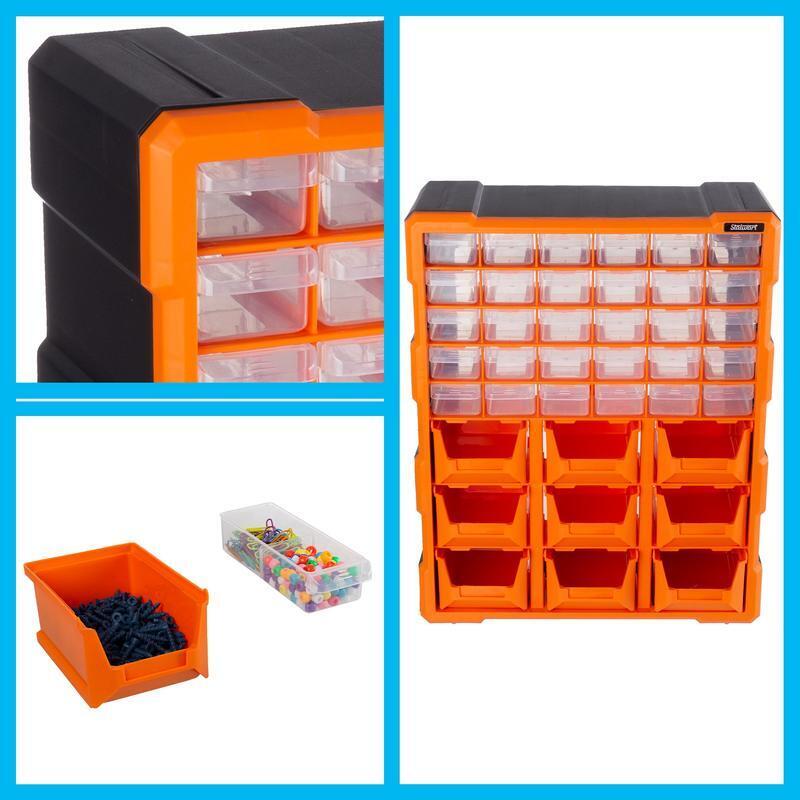 You may also like Stainless Steel Cam Lock Durable Galvanized Steel Wall Mount Mailbox W/ Keys New 42.47 USD Free shipping Unique Outdoor Wall-Mounted Mailbox Durable Weatherproof Lockable Delivery Box 95.69 USD 100.73 USD Free shipping 5% off Weather-Resistant Mailbox Extra Storage Magnetic Door Easy Assembly Outdoor Use 385.69 USD 405.99 USD Free shipping 5% off Mailbox Locking Decorative Steel Post Mount Weather Resistant Yard Garden New 56.47 USD Free shipping Durable Locking Wall Mount Mailbox W/ Newspaper Slot & Waterproof Cover 44.3 USD 46.63 USD Free shipping 5% off Heavy Duty Waterproof Wall Mount Mailbox Modern Design Large Capacity Rustproof 56.84 USD Free shipping Locking Wall Mount Mailbox Secure Key Lock Durable Weather Resistant Mail Holder 59.48 USD Free shipping Wall Mount Mailbox Spacious Storage Secure Lockable Steel Rust Resistant New 59.21 USD Free shipping Wall Mount Mailbox Secure Drop Box Weatherproof Locking Residential Office Decor 45.04 USD 47.41 USD Free shipping 5% off Large Capacity Mailbox High Volume Delivery Post Mount Glossy Black Finish New 89.14 USD 93.83 USD Free shipping 5% off Rust Resistant Galvanized Steel Mailbox Medium Capacity W/ Pull Knob & Flag New 49.94 USD 52.57 USD Free shipping 5% off Wall Mount Mailbox Lockable Galvanized Steel Drop Box W/ Key Easy Installation 39.62 USD 41.71 USD Free shipping 5% off The Plastic Storage Bins with Drawers is an excellent organizational solution for your garage, craft room, playroom, or office. This stackable tabletop screw organizer can also be mounted to the wall with the built-in keyhole slots on the rear, offering easy access to the 30 small compartments and 9 larger drawers wherever you need them. Tool Boxes and Organizers, Plastic, 5 lb Small Parts Organizer - The hardware or bead organizer features a total of 39 plastic drawers, perfect for storing nuts, bolts, fishing gear, beads, sewing supplies, and toy building blocks Smart Design - This garage storage solution includes 30 small bins and 9 larger bottom drawers, all equipped with easy-open finger pulls for convenient access and visibility to the contents inside Strong Construction - Made from impact-resistant material, this plastic drawers organizer is durable and designed to withstand use in workshops or playrooms Secure Storage - The plastic storage bins can be placed on any work surface, stacked, or mounted to the wall using the keyhole slots on the back for versatile organization Dimensions - Overall Craft Organizer: (L) 185" x (W) 15" x (H) 625"; Small Drawers: (L) 15" x (W) 2" x (H) 6"; Large Bottom Drawers: (L) 3" x (W) 4" x (H) 6" Color - Black and Orange You may also like 2 in 1 Handheld Oscilloscope/DDS Signal Generator Digital Portable Automotive 56.69 USD 59.67 USD Free shipping 5% off Whole Kernel Corn Canned Vegetables Pack of 4 Non-GMO Shelf-Stable Ready to Use 9.92 USD 10.44 USD Free shipping 5% off Range Hood 30in Under Cabinet Ducted/Ductless Convertible Kitchen Hood Stainless 53.81 USD 56.64 USD 39.99 USD 5% off Adjustable Gaming Chair W/ Flip-Up Armrests & Comfortable Lumbar Support New 135.8 USD 164.9 USD Free shipping 18% off All Natural Quick Lighting Fire Starters Tumbleweeds 16 Pack Odorless Easy Use 11.05 USD 11.63 USD Free shipping 5% off Heavy Duty Weatherproof Mailbox W/ Key Lock Large Capacity Wall Mount Design New 41.26 USD Free shipping Queen Raised Air Mattress W/ Built-in Pump Headboard Portable Comfort Sleep New 113.32 USD 137.6 USD Free shipping 18% off Non-Skid Deck Paint Marine Anti-Slip Traction Coating Boats Wood Metal New 83.28 USD Free shipping 5 Tier Adjustable Corner Shower Caddy Organizer W/ Hooks Rustproof Tension Pole 66.78 USD Free shipping High Protein Bars Chocolate Peanut Caramel 20g Protein Gluten Free Snack 4 Count 11.3 USD 11.89 USD Free shipping 5% off Heavy Duty Flexzilla Pro Air Hose 3/8" x 50ft Hybrid Polymer Flexible Durable US 57.36 USD Free shipping Electric Coffee Percolator 12 CUP Coffee Pot Stainless Steel Auto Keep Warm New 63.46 USD 66.8 USD Free shipping 5% off
