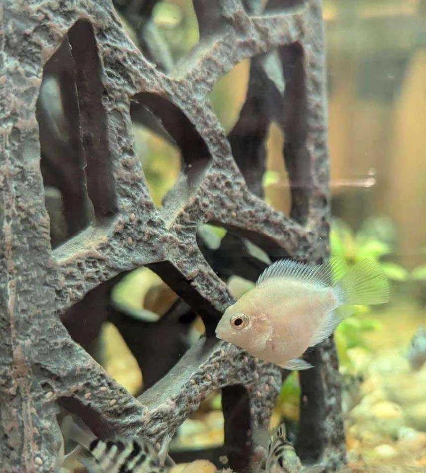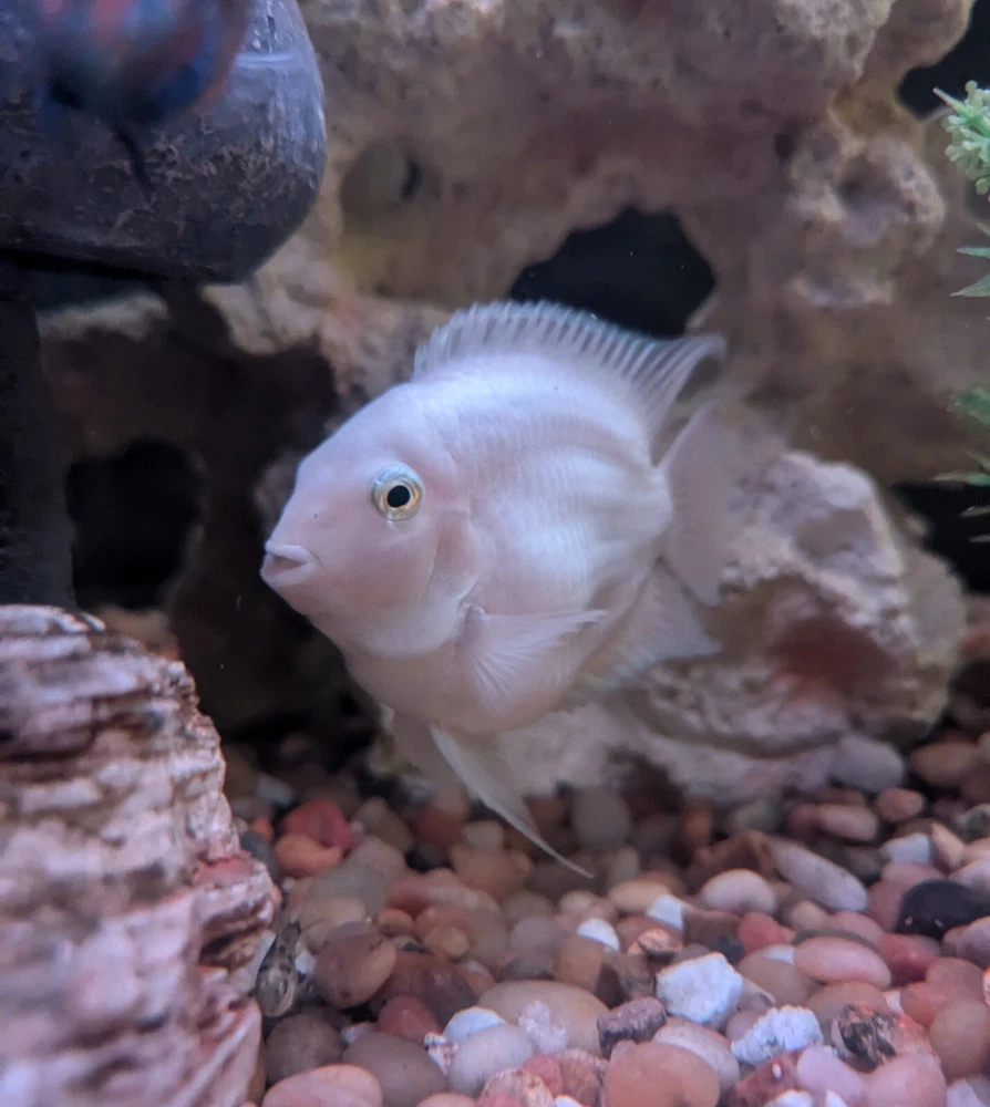 Introducing the Platinum Polar Parrot Cichlid , also known as the Snow White Cichlid a stunning addition to any freshwater aquarium. This CAN BE an aggressive species during mating season and is an intermediate level fish sold in a mixed gender lot from here in the United States. The Platinum Polar Parrot Cichlid finds tropical temperature waters to be the most relaxing and are known for their hardiness. The Cichlid is a fascinating creature that will bring a unique touch to your aquarium. In addition to its rarity, this fish is also known for its vibrant blue coloring and unique behavior patterns. It is perfect for fish and aquarium enthusiasts who enjoy a challenge. Don't miss out on the opportunity to add this amazing species to your collection.
