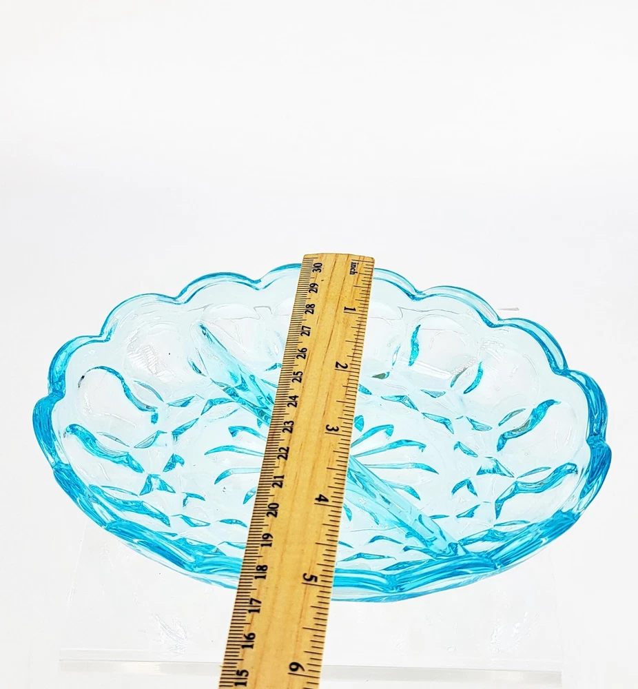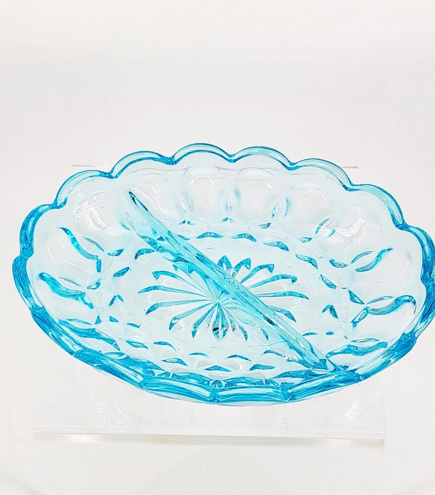 BRAND: Anchor Hocking Vintage Divided Dish, Made in the USA. Vintage 1960s. COLORWAY: Light Blue SIZE: Approximately 1.5" Tall, 5" Wide and 7" Long. CONDTION: Excellent Condition with no signs of chips or cracks. Please see my photos for exact Details. Thank you for stopping by today and have a wonderful week.