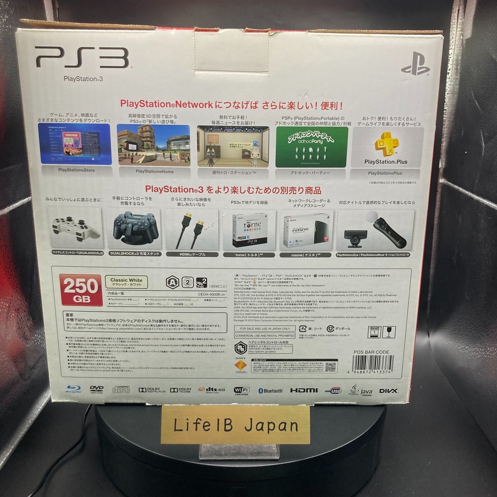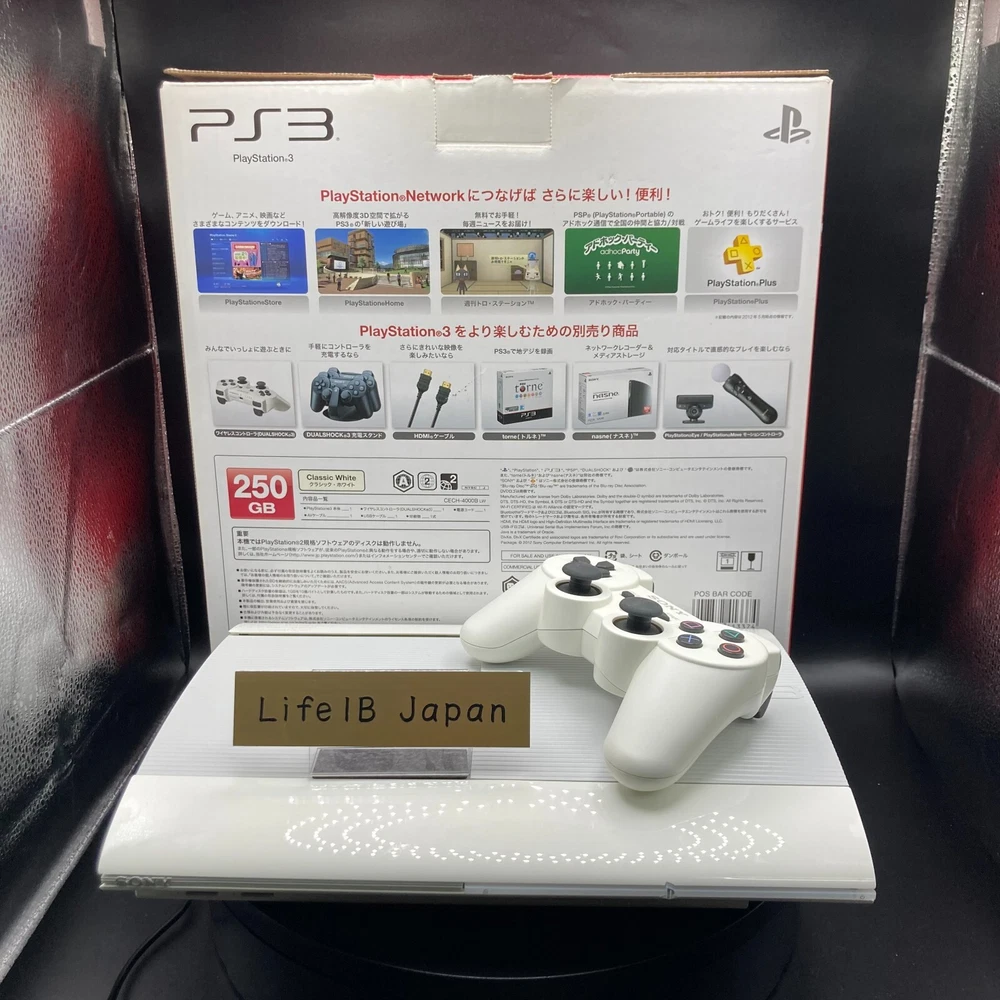 PlayStation 3 250GB Classic White CECH-4000B Console – PS3 System with Box Description Condition: Used Language: Japanese This is the Japanese version. This is the Japanese version, so please make sure it is compatible with the product in your country before purchasing. If it is region locked, please unlock it yourself. This Sony PlayStation 3 250GB Classic White CECH-4000B Console is a sleek and stylish addition to your gaming setup. Designed for high-quality gaming performance, this system offers reliable performance and a classic look that blends well with any gaming environment. The console features a 250GB hard drive, providing ample storage for your favorite games, downloadable content, and media. Key Features: Model : CECH-4000B Storage : 250GB hard drive Color : Classic White Includes : Console, power cable, and HDMI cable for seamless connectivity. Original Box : Comes with its original packaging, ensuring safe storage and shipping. This system is perfect for both casual and hardcore gamers alike. Whether you're playing single-player adventures or multiplayer battles, the PlayStation 3 delivers an immersive gaming experience. The 250GB of storage allows you to store a wide array of games, music, videos, and more, keeping all your entertainment in one convenient place. The sleek white design adds a modern touch to your setup, standing out while blending seamlessly with other gaming gear. The CECH-4000B model is known for its reliability, making it a great option for those seeking a high-performing console without compromising style. Upgrade your gaming collection today with the PlayStation 3 250GB Classic White CECH-4000B Console, perfect for those looking to enjoy classic PS3 titles or explore new ones. Grab yours today and dive into the world of PlayStation 3 gaming! Shipping We will send the item by FedEx, DHL, SpeedPAK, or Japan Post. We always send the item with a tracking number, So please place an order without any concern on delivery. You can always track the delivery status. Delivery date: 5-10 business days to US(FedEx and DHL), 8-12 days to US(SpeedPAK), 10-20 days to US(Japan Post). Delivered to all countries within 5 -20business days. Shipping is only available to the address registered in eBay. If you want us to send another address, please change your address on eBay and then place an order. Shipping is available from Monday to Friday. Weekends are not available because freight companies are closed. ?Delivery may be delayed due to the weather, customs clearance, and conditions of the destination country. The delivery method may change depending on the country. International Buyers - Please Note: Import duties, taxes, and charges are not included in the item price or shipping cost. These charges are the buyer's responsibility. Please check with your country's customs office to determine what these additional costs will be prior to bidding or buying. Thank you for your understanding.
