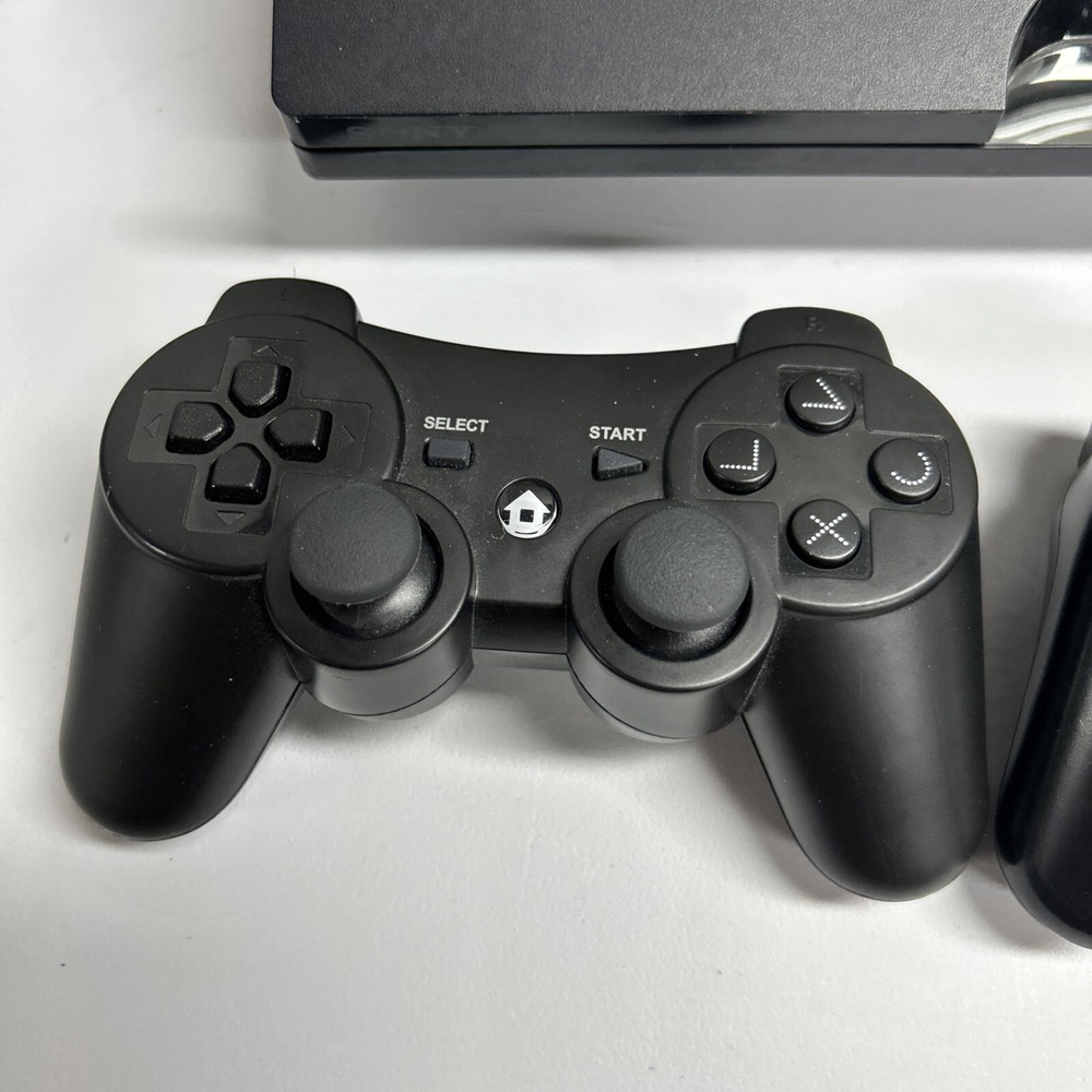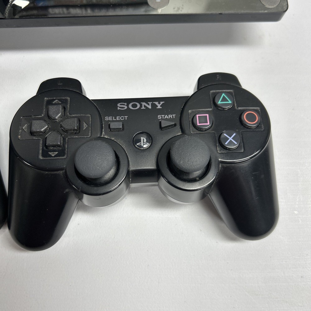 PlayStation 3 Slim 2 Controllers & 10 Games Tested. Condition is Used. Shipped with USPS Priority Mail.