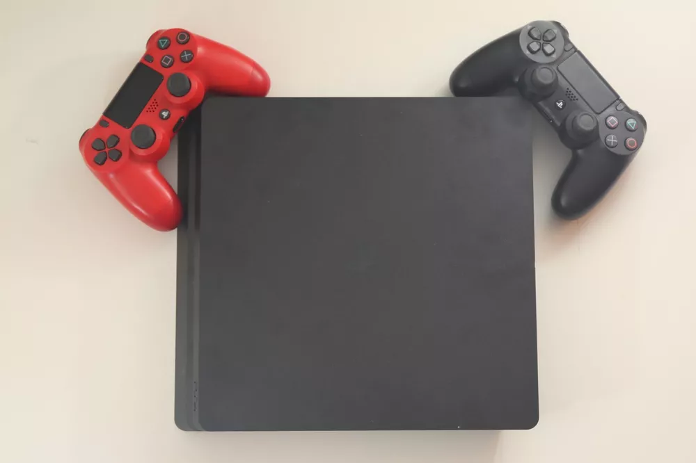 Play Station 4 Slim 1tb. Comes with 2 controllers, one black one red, the red is a little separated but it doesn't feel like it is about to fall off when you are playing and is pretty sturdy. Comes with Madden 23 in the console. comes with charging cord for both controllers and power cord. I reset it, feel free to reach out with questions or offers.