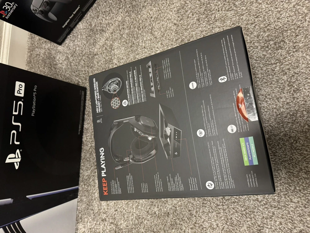 You will receive all items included in the picture 1x PlayStation 5 Pro 1x Astro A50X Headset 1x PlayStation DualSense 30th Anniversary Edition Controller Experience the future of gaming with this Sony PlayStation 5 Pro Digital Edition Console. This console offers lightning-fast load times and stunning visuals, thanks to its powerful hardware and advanced graphics technology. Play your favorite games in stunning 4K resolution and HDR, or take advantage of the console's backward compatibility to play your favorite titles from previous generations. With its sleek white design and compact size, this Sony PlayStation 5 Digital Edition Console is the perfect addition to any home entertainment setup. Enjoy hours of uninterrupted gaming, or take a break and watch your favorite movies and TV shows on the big screen. This console is the ultimate gaming machine, and it's available today!