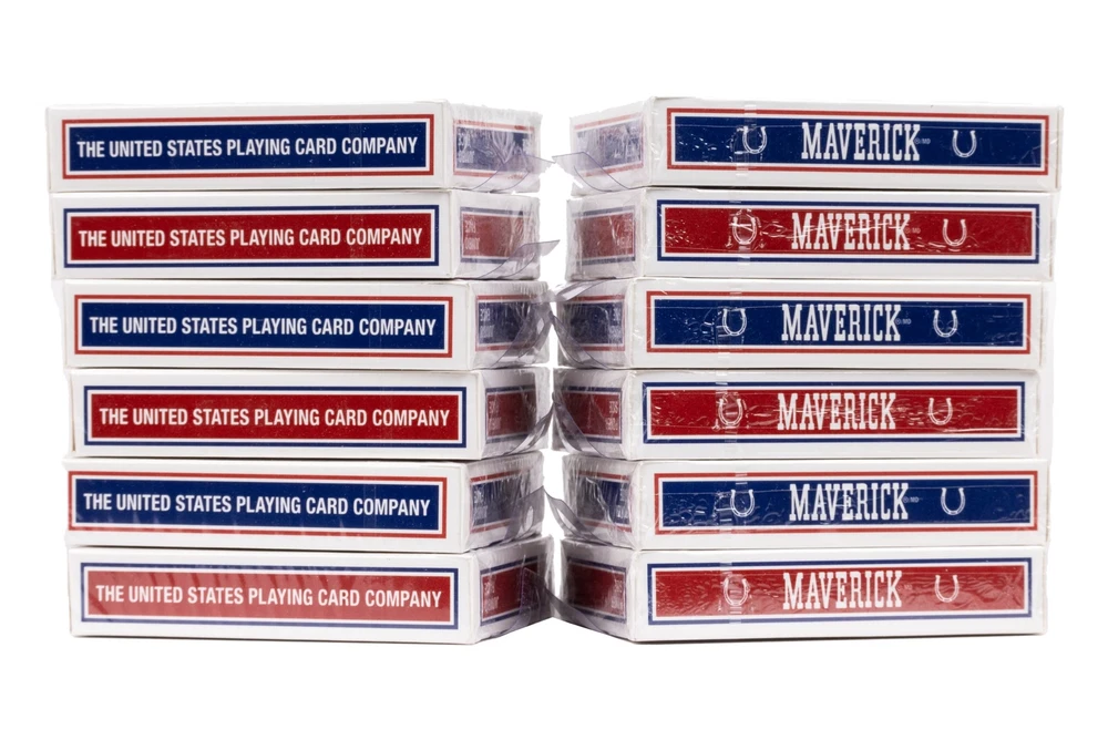 Experience a delightful fusion of class and versatility with our Maverick Playing Cards. These jumbo playing cards come in a handy 12 pack, featuring a simple yet charming design that brings a warm, friendly touch to every hand dealt. Each deck of cards offers 52 cards, plus 2 Jokers and 2 ad cards, providing all the essentials for a wide range of card games. Whether you're using them as poker cards, bridge playing cards, or for other popular games such as blackjack, euchre, pinochle, rummy, or canasta, these cards have you covered. These playing cards for adults boast a plastic coating and smooth finish, designed for easy handling and long-lasting use. The decks of cards are perfect for accommodating larger groups or engaging in multiple games simultaneously. With our bulk playing cards, the fun never ends, making them an exceptional choice for every player. Enjoy the reliability, remarkable quality, and classic design of our Maverick Playing Cards for endless enjoyment. JUMBO INDEX PLAYING CARDS: Experience the joy of card games with our Maverick Playing Cards, showcasing a simple, yet charming design on the back. This 12 pack of jumbo playing cards bring a casual and friendly touch to every turn 12 PACK OF ENDLESS FUN: Perfect for arranging impressive card game nights or for those seeking diversity, our pack of 12 decks of cards makes it possible to accommodate bigger groups or to indulge in several games at the same time, ensuring the entertainment never ceases CLASSIC DECK: Each deck of playing cards holds 52 plus 2 Jokers and 2 ad cards, perfect for all your card games and tricks VERSATILE GAMING: Whether you're a fan of poker cards, blackjack, euchre, pinochle, rummy or canasta, our cards cater to all. An exceptional choice for all types of players REMARKABLE QUALITY & DESIGN: Enjoy the reliability of our Maverick Playing Cards. Protected by a plastic coating and boasting a smooth finish for effortless handling, our deck of cards are designed for long-lasting use