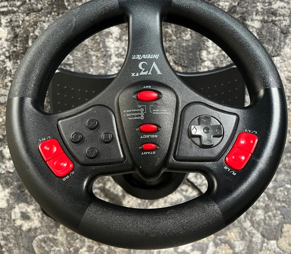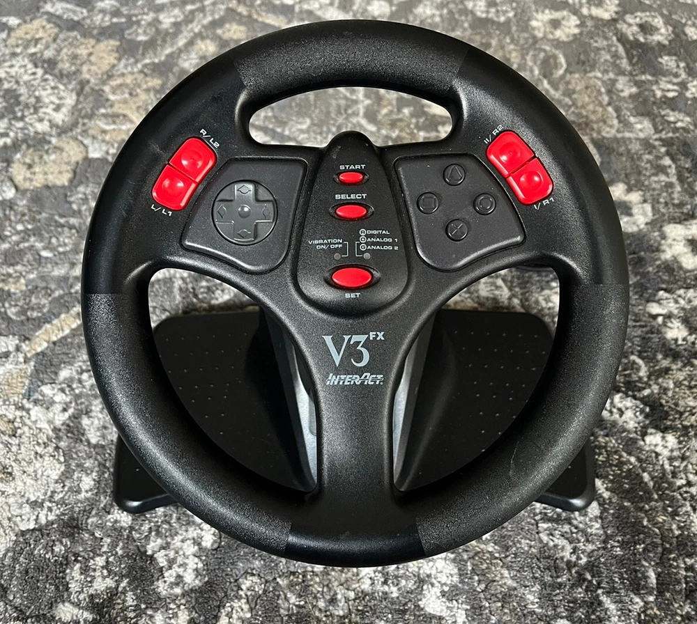 Experience ultimate racing with this Interact Car Racing Steering Wheel for Playstation PS1, PS2, and PS3. The rigidity of this black racing wheel guarantees a sturdy hold and reliable performance, making it compatible with console, games, and accessories. Its controller attachment connectivity and 4ft cable length allow for easy attachment and detachment, while its features include wheels and wheel controls. This racing wheel is designed for maximum number of players and is compatible with Sony PlayStation 1 and 2. Its exterior color is black, and it is made of rigid plastic. The Interact Car Racing Steering Wheel is the perfect addition to your gaming setup, giving you a realistic driving experience….WILL SHIP WITH CARE! CLEAN!