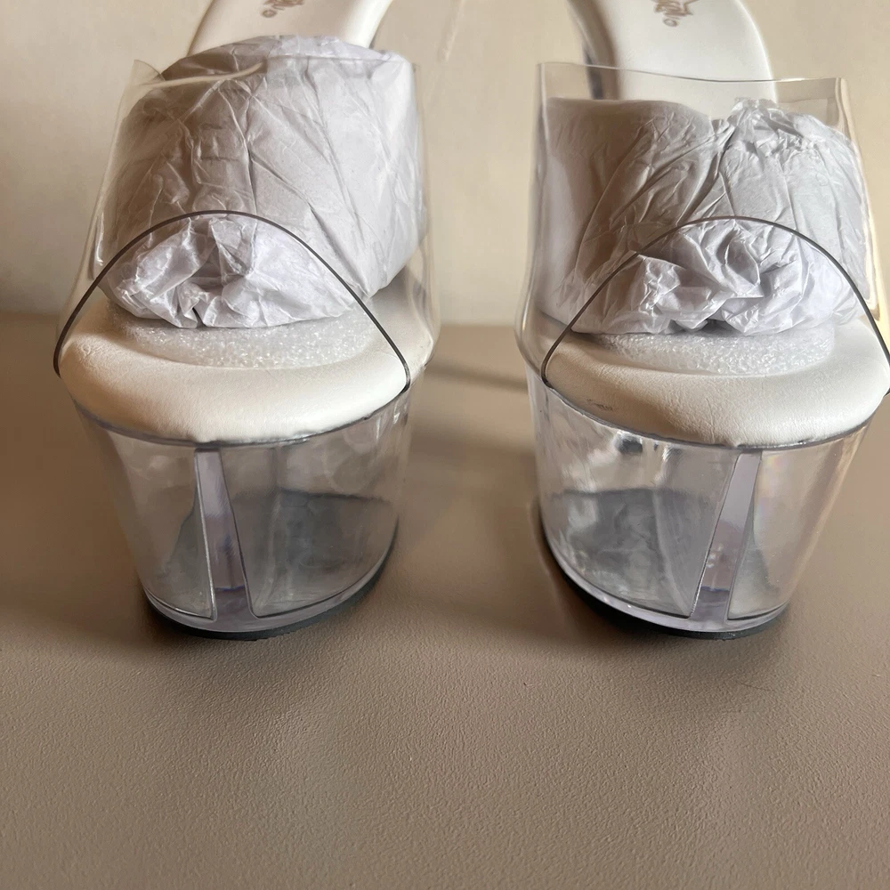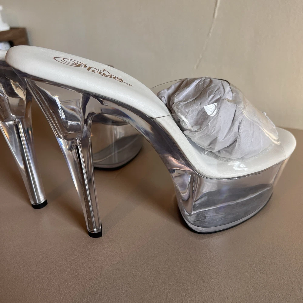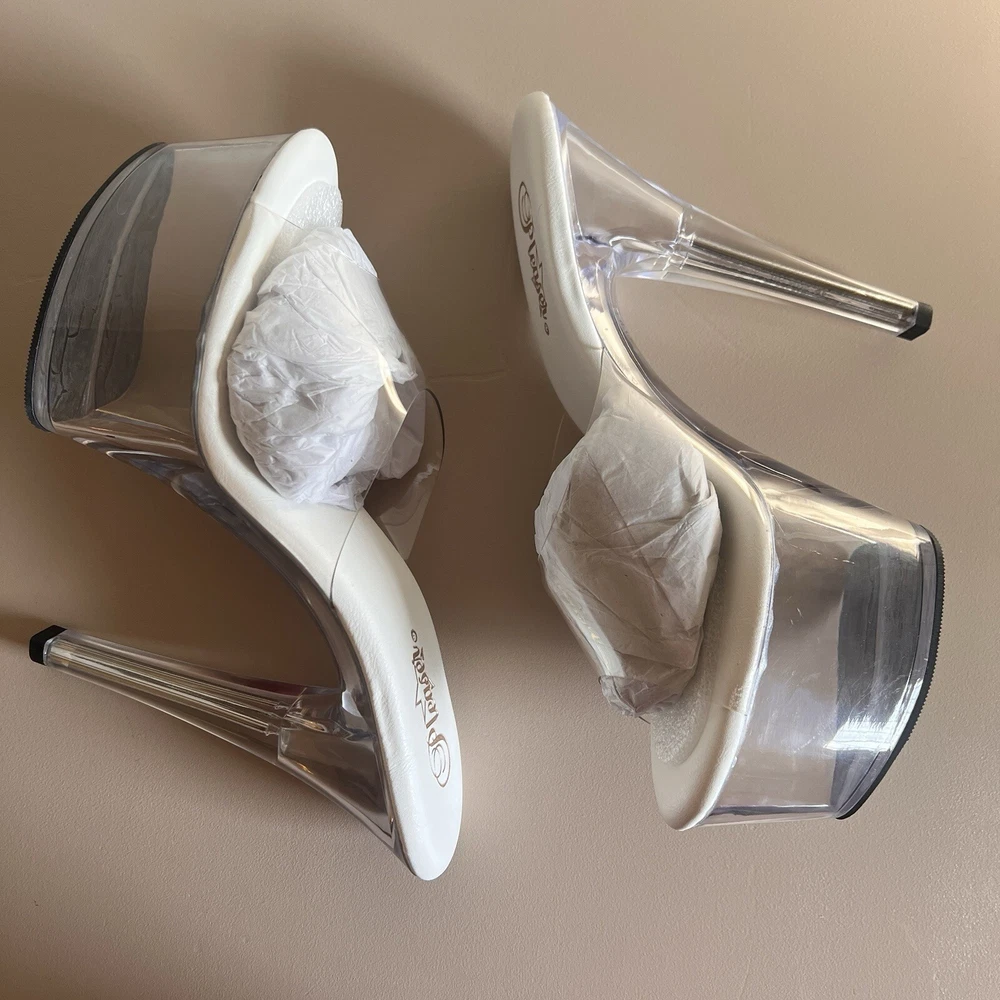 6" Heel 2 1/4" Platform Vegan Friendly Slide Discover the allure of the Aspire-601 slides, where fashion meets function in an elegant synthesis. With a 6-inch heel and a 2 1/4-inch platform, these slides offer an elevated stance, flawlessly blending drama and wearability. The vegan leather insole caters to those who value ethical fashion choices, providing a touch of luxury with every wear. The clear design exudes modernity, making these slides a versatile piece for any occasion, from special events to daily glamour. Experience the blend of style and comfort with the Aspire-601.
