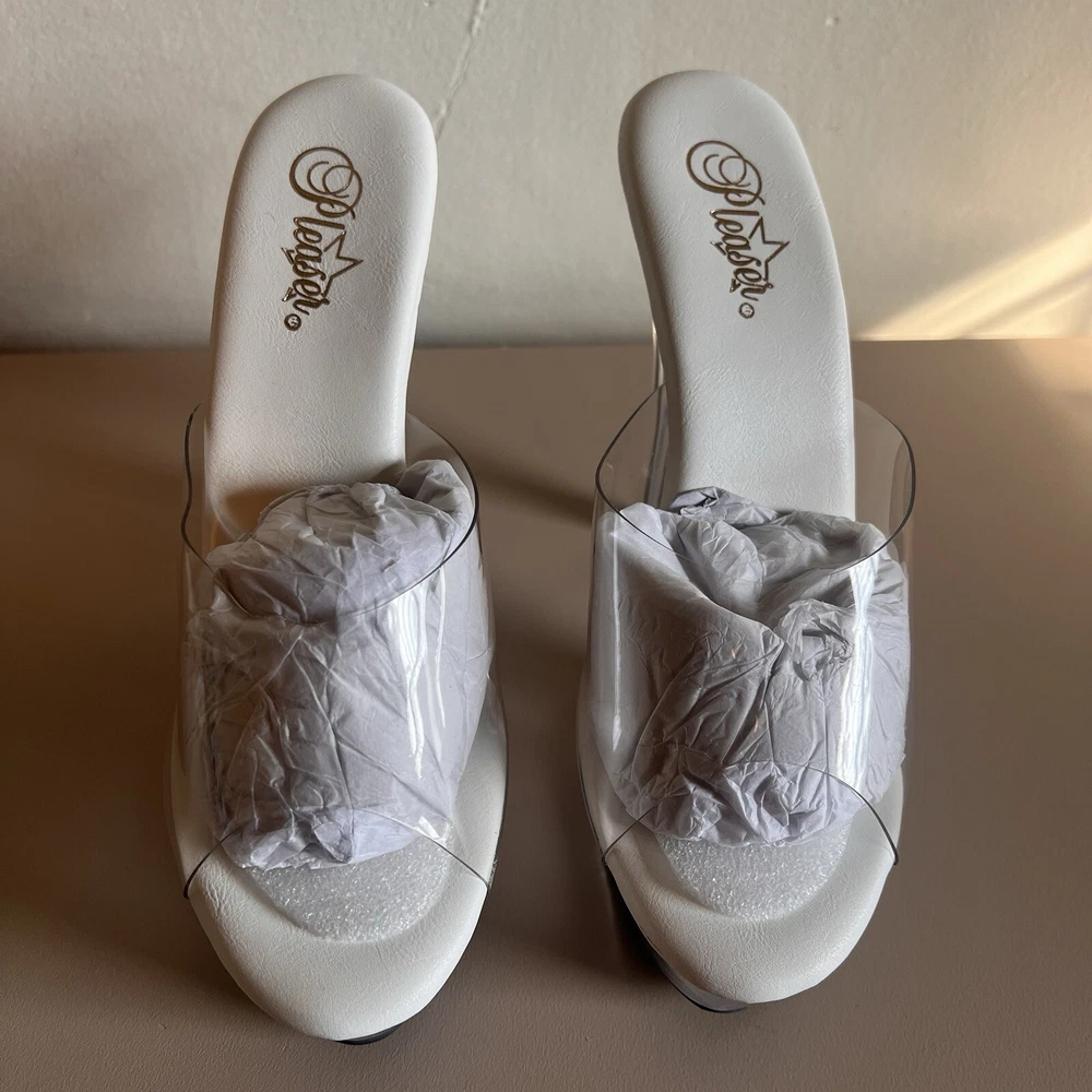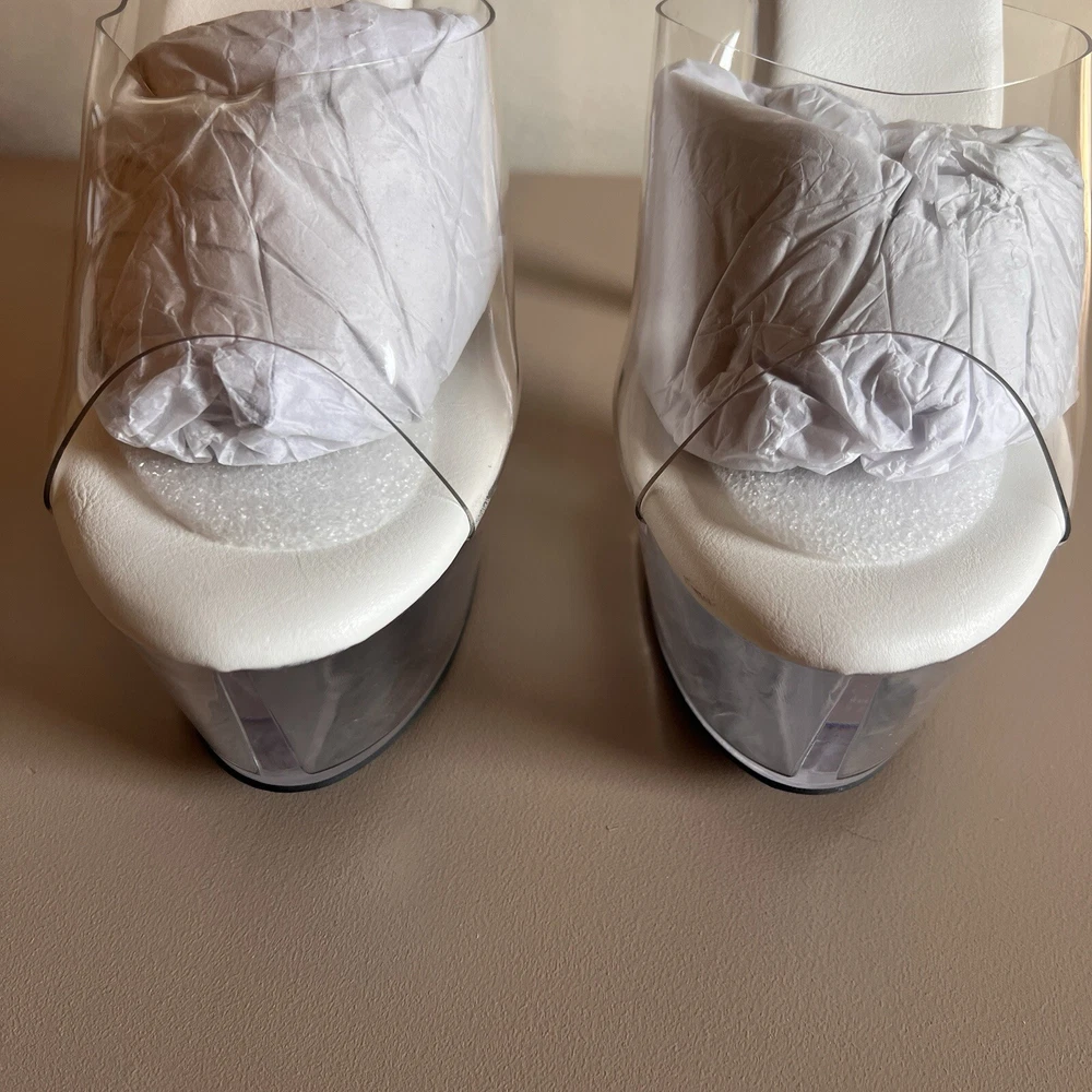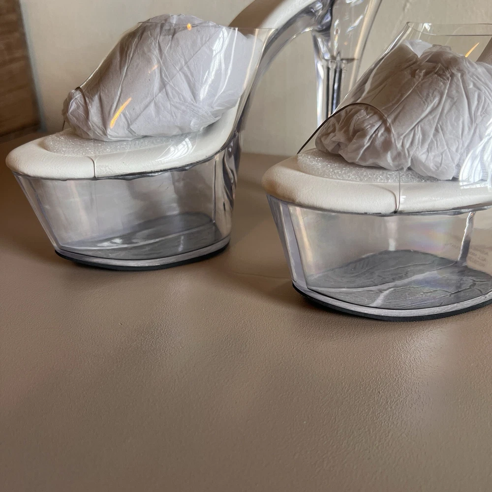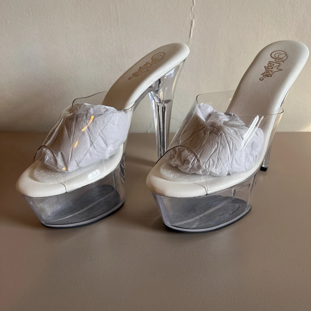 6" Heel 2 1/4" Platform Vegan Friendly Slide Discover the allure of the Aspire-601 slides, where fashion meets function in an elegant synthesis. With a 6-inch heel and a 2 1/4-inch platform, these slides offer an elevated stance, flawlessly blending drama and wearability. The vegan leather insole caters to those who value ethical fashion choices, providing a touch of luxury with every wear. The clear design exudes modernity, making these slides a versatile piece for any occasion, from special events to daily glamour. Experience the blend of style and comfort with the Aspire-601.