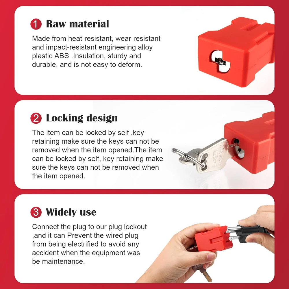 Store New Arrivals Add to Favorite View Feedback Contact Plug Lock-Electrical Cord Plug Lockout Device, Electrical Shutdown Service Fits U.S Standard 2- and 3-Pronged Plugs 2 Keys per Lock-2Pcs Red Description Item model number -PlugLock-001 Part Number red-2 Item dimensions L x W x H 1.38 x 0.91 x 1.97 inches Number of Pieces 2 Included Components 4 keys Color Red Control Method App Material Acrylonitrile Butadiene Styrene Country of Origin China Style Industrial Item Weight 1.76 ounces Shape Rectangular Lock Type Mortise Lock Batteries Required? No Special Features with 2 keys Special Feature with 2 keys Product Dimensions 1.38 x 0.91 x 1.97 inches Recommended Uses For Product home security, electrical equipment safety Controller Type Hand Control Comprehensive plug lock: Universal plug lock, lockout tagout programs for home and apartment security, keeping unauthorized users away from your electrical equipment. User-friendly Design: Electrical cord lock comes with an easy to use setup. Simply connect the plug lock to the plug of any power tool, appliance, or equipment to lock it, effectively preventing the plug from being energized. Durable and Robust: Constructed with high-strength ABS material, This lockout lock offers heat, abrasion, and impact resistance, providing long-lasting durability,The sturdy structure is not easily deformed and insulation. Key retention safety feature: Unique design ensures that the plug lock cannot pull out the key in the open state, preventing security concerns from key misplacement or key left behind. Package: Each package contains 2 outlet locks and 2 keys for each lock, each key is uniquely numbered for your convenience and security. Product Description Electric Plug lockout device The Electric Plug lockout device can be used as part of the OSHA licensing program and can also be used with 110-240V standard 2- and 3-pin plugs for home safety. Very practical and easy to use, but it's really just a matter of opening the lock with the key, inserting the plug and locking the lock. High quality plug locks Plug lock body is made of ABS, insulated and durable, not easy to deform, heat-resistant and impact-resistant. it's simple to operate, works well for locking chords and keeping kids off of devices. 2 keys included Key retention safety feature: Unique design ensures that the plug lock cannot pull out the key in the open state, preventing security concerns from key misplacement or key left behind. Technical Parameters Project name Electric Plug lockout device Material Plastic ABS pertain 2- and 3-Pronged Plugs Packaging includes 2 Plug lock, 4 keys ABOUT US We offer the best prices around on high quality products. Our E-store includes media such as books, movies, music and games while offering electronics, toys, sporting apparel, clothing, tools, general home, garden items and more. SHIPPING We are always working hard to ensure your package arrives as soon as possible. Please understand that some factors like weather, high postal traffic, and the performance of shipping companies are outside of our control. We offer free shipping to the lower 48 states and ship within 2 business days of payment, usually sooner. We do not accept P.O. Boxes. Please provide a physical address. For shipping outside of the continental USA, we only use eBay's Global Shipping Program.The item is shipped to KY and then sent to the rest of the world. International customers are responsible for all duties and taxes. Continue to check out in order to calculate costs for shipping the item to your country. Messages regarding eBay's Global Shipping Program MUST be directed at eBay EXCLUSIVELY. RETURNS We offer a 30-Day Return Policy on items which you are not completely satisfied with. You have the option for a full-refund or an exchange of the item. No returns are available on items shipped outside of the USA. PAYMENT We accept PayPal. CONTACT US This page content is yet to come Please ad us to your favorite seller and visit again later Thank You CUSTOMER SATISFACTION We try our very best to make sure every customer is completely satisfied. If there's a problem, message us! We're happy to help. WE ACCEPT Copyright © 2021 AutoDS. | All Rights Reserved