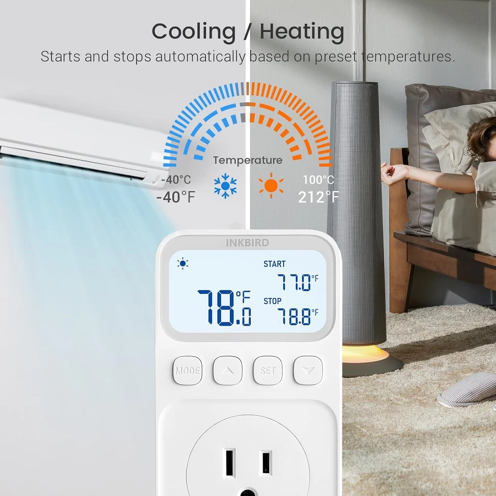 Store New Arrivals Add to Favorite View Feedback Contact Plug in Thermostat 15A 1800W, Programmable Heating Cooling Digital Temperature Controller Timer for Window A/C Fan Heater Greenhouse Homebrewing Reptile Description Item model number C226T15A-US Control Type Button Control Display Type LCD Controller Type Hand Control Color White Included Components 1x C226T, 1x User Manual Wattage 1.8E+3 Control Method Remote Style Custom Package Dimensions 5.39 x 3.58 x 3.5 inches Item Weight 8.1 ounces Shape Rectangular Temperature Control Type programmable Voltage 240 Volts Model Name C226T15A Specific Uses For Product Electric Baseboard Heater Special Feature Programmable Backlight Yes Size 1800W 15A Plug & Play: Easy to program and safe in use, Supports temperature mode, cycle time mode, and countdown mode, 3 control modes, Temperature control range: -40 ℉~212 ℉, Power: 1800 W (120 Vac), 15A Safer In Use: It supports high and low temperature alarms with custom alarm values for use scenarios requiring more strict temperature control, and the buzzer can be muted Temperature Mode: Just set START and STOP temperatures and it will automatically run in heating or cooling mode based on the set points. When Start Temper>Stop Temper, it enters cooling mode; when Start Temper<Stop Temper, it enters heating mode Timing Function: It features cycle time and countdown function and total of 4 modes can be selected — P01 Cycle Time Mode, P02 Countdown ON Mode, P03 Countdown OFF Mode, and P04 Countdown ON&OFF Mode. Timing range: 0 ~ 99 hours and 59 minutes More Functions: The IP67 waterproof temperature probe can be inserted into the soil or submerged in water, and the backlit LCD screen makes it easy to see the current temperature and set temperatures in the dark Wide Application: This temperature control socket is widely applicable to reptiles, incubators, terrariums, refrigerators, heaters, home brewing, fermentation, and other temperature control systems, and it can be a timer with cycle timing and countdown It also supports temperature calibration, factory reset, child lock, and a memory function that can save all set parameters after a power failure. Please note that the temperature mode and timing function cannot be used at the same time Product Description The video showcases the product in use. The video guides you through product setup. The video compares multiple products. The video shows the product being unpacked. Work intermittently Set START=12:00, STOP=12:00. It will work for 12h, then stop for 12h, then cycle again. Work at a specified time Set START=00:30. the countdown for 30 min, the system will automatically start and keep working. Stop at specified time Set STOP=00:40, the system will automatically start working for 40 min and stop. ON&OFF at specified time Set START=00:30 & STOP=00:40. It will countdown for 30min, and start working for 40 min, and stop. Set START & STOP Temperature Heating : START < STOP (eg. 70°F - 80°F) Cooling : START > STOP (eg. 60°F - 50°F) 1 P01 Cycle Time 2 P02 Count Down ON 3 P03 Count Down OFF 4 P04 Count Down ON&OFF 5 Heating/Cooling 1 High Accurate 2 Temperature Alarm 3 IP67 Waterproof 4 Child Lock ABOUT US We offer the best prices around on high quality products. Our E-store includes media such as books, movies, music and games while offering electronics, toys, sporting apparel, clothing, tools, general home, garden items and more. SHIPPING We are always working hard to ensure your package arrives as soon as possible. Please understand that some factors like weather, high postal traffic, and the performance of shipping companies are outside of our control. We offer free shipping to the lower 48 states and ship within 2 business days of payment, usually sooner. We do not accept P.O. Boxes. Please provide a physical address. For shipping outside of the continental USA, we only use eBay's Global Shipping Program.The item is shipped to KY and then sent to the rest of the world. International customers are responsible for all duties and taxes. Continue to check out in order to calculate costs for shipping the item to your country. Messages regarding eBay's Global Shipping Program MUST be directed at eBay EXCLUSIVELY. RETURNS We offer a 30-Day Return Policy on items which you are not completely satisfied with. You have the option for a full-refund or an exchange of the item. No returns are available on items shipped outside of the USA. PAYMENT We accept PayPal. CONTACT US This page content is yet to come Please ad us to your favorite seller and visit again later Thank You CUSTOMER SATISFACTION We try our very best to make sure every customer is completely satisfied. If there's a problem, message us! We're happy to help. WE ACCEPT Copyright © 2021 AutoDS. | All Rights Reserved