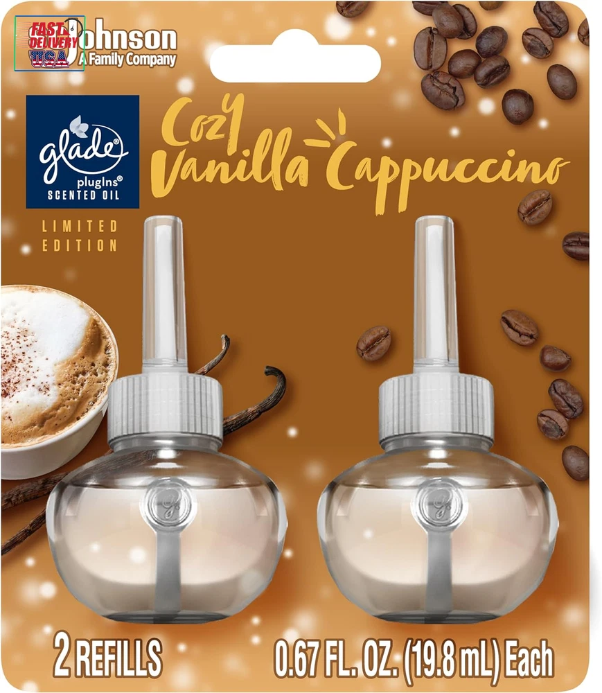 Store New Arrivals Add to Favorite View Feedback Contact Plugins Refills Air Freshener, Scented and Essential Oils for Home and Bathroom, Cozy Vanilla Cappuccino, 1.34 Fl Oz, 2 Count Description Item model number 363965 Power Source electric plug-in Color Beige Scent Cozy Vanilla Cappuccino Product Dimensions 1.47 x 4.95 x 5.82 inches; 2.89 ounces Country of Origin USA Item Form Oil Turn up the season with Cozy Vanilla Cappuccino, a limited edition plugIns scented oil air freshener from the Glade Holiday Glow Collection. Notes of vanilla foam, roasted coffee and toasted hazelnut; this room freshener scent will bring cozy indulgence to any room. Glade scented oil fragrances are crafted by master perfumers and include fragrance infused with essential oils. Get luxury scents at everyday prices with Glade. Limited edition fragrances to turn up the season. Turn up the season with Cozy Vanilla Cappuccino plugIns® scented oil refill for home use. This limited edition coffee and hazelnut scented oil fragrance is a great way to add a little indulgent fragrance to any gathering with festive fragrance and holiday scents. This Glade Cozy Vanilla Cappuccino fragrance surrounds you with notes of vanilla foam, roasted coffee and toasted hazelnut. It’s an indulgent fragrance with a traditional comfort and a charming nuance. Perfect to bring a cozy vibe to any space! Glade winter scents are crafted by master perfumers and infused with essential oils. This Glade plugin scented oil features ceramic heating technology, with our most adjustable warmer ever. Expertly designed to create a continuous ambience with longer lasting fragrance, you can use it to set the perfect vibe of every room. The Glade Holiday Glow Collection is a range of limited-time-only Glade fall scents that will add a layer of cozy indulgence and traditional comfort to any gathering, bringing those you love a little closer this holiday season. Make your home smell festive this fall with Glade. ABOUT US We offer the best prices around on high quality products. Our E-store includes media such as books, movies, music and games while offering electronics, toys, sporting apparel, clothing, tools, general home, garden items and more. SHIPPING We are always working hard to ensure your package arrives as soon as possible. Please understand that some factors like weather, high postal traffic, and the performance of shipping companies are outside of our control. We offer free shipping to the lower 48 states and ship within 2 business days of payment, usually sooner. We do not accept P.O. Boxes. Please provide a physical address. For shipping outside of the continental USA, we only use eBay's Global Shipping Program.The item is shipped to KY and then sent to the rest of the world. International customers are responsible for all duties and taxes. Continue to check out in order to calculate costs for shipping the item to your country. Messages regarding eBay's Global Shipping Program MUST be directed at eBay EXCLUSIVELY. RETURNS We offer a 30-Day Return Policy on items which you are not completely satisfied with. You have the option for a full-refund or an exchange of the item. No returns are available on items shipped outside of the USA. PAYMENT We accept PayPal. CONTACT US This page content is yet to come Please ad us to your favorite seller and visit again later Thank You CUSTOMER SATISFACTION We try our very best to make sure every customer is completely satisfied. If there's a problem, message us! We're happy to help. WE ACCEPT Copyright © 2021 AutoDS. | All Rights Reserved