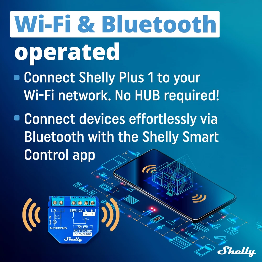 Plus 1 is a small form factor smart switch with potential-free contacts, which allows remote control of electric appliances through a mobile phone, tablet, PC, or home automation system. It can work standalone in a local Wi-Fi network or it can also be operated through cloud home automation services and Bluetooth.Plus 1 can be accessed, controlled and monitored remotely from any place where the User has internet connectivity, as long as the device is connected to a Wi-Fi router and the Internet.It can be retrofitted into standard electrical wall boxes, behind power sockets and light switches or other places with limited space.Plus 1 has embedded Web Interface which can be used to monitor and control the device, as well as adjust its settings. Control a wide range of home appliances and office equipment (lights, power lines, security systems, heaters, radiators, sockets, LED strips, etc.) from anywhere.Dry contactsExtremely fast processor – ESP32, Improved API interfaceEnhanced safetyEnhanced security - MQTT and WSS support, TLS and custom certificates supportDesigned to fit in most standard electrical boxes and switchesEasy control through the app, various protocols, and platforms, as well as voice assistants. Even better home automation experience and enhanced lighting control! Automatization of the lights, garage door, irrigation system, bathroom fan, any old electrical appliances… you name it! Plus 1 has numerous applications providing enhanced smart home control. Small enough to fit behind every wall switch or wall socket, Plus 1 is retrofit and can be installed in less than 10 minutes.Weekly scheduling automation Create a home automation that follows your schedule! Plus allows you to quickly set actions based on your daily or weekly schedule.Smart actions for dynamic control&n Plus 1 is a UL-certified Wi-Fi & Bluetooth-operated smart relay switch with 1 channel, up to 15A that can be used also as a WiFi repeater. Plus 1 UL can be used to control any home appliances, electric circuits, and office equipment individually. Make any electrical appliance, garage door and irrigation system smart - No need to run additional cables, do unnecessary and expensive renovations or invest in smart appliances. You can now automate and control remotely every electrical appliance – even the old fan, room heater, pool system, door lock or doorbell, Garage Door and Irrigation System– with just a click or a shout. Safe and Easy to install - Small enough to fit behind every wall switch or wall socket, Plus 1 is retrofitted and can be installed in less than 10 minutes. Enhanced safety and enhanced security MQTT and WSS support, TLS and custom certificates support. Customer Service - is one of the fastest-growing IoT brands in the world with devices, providing solutions for the automation of private homes, buildings and businesses. We provide our customers with professional support and a 3 years device warranty. Smart control app will help you control your devices remotely and will send notifications for all automated events in your home. You can easily configure devices and manage their settings individually, or you can create personalized scenes by combining devices to trigger certain actions in your home automation.