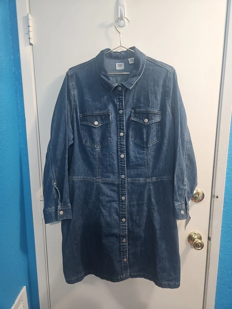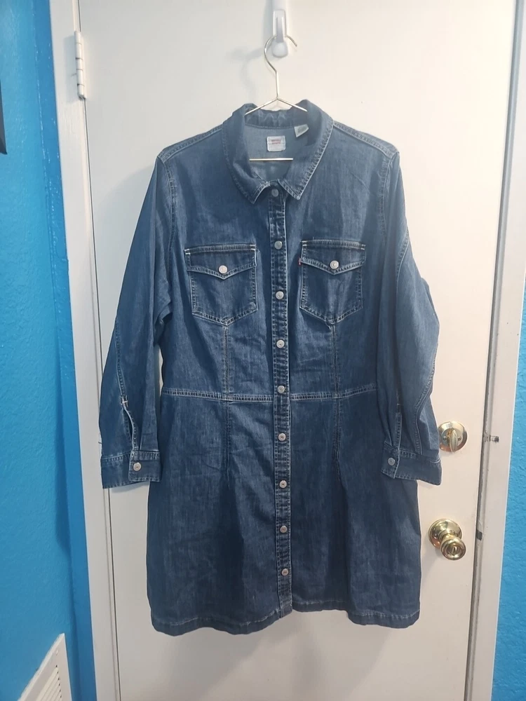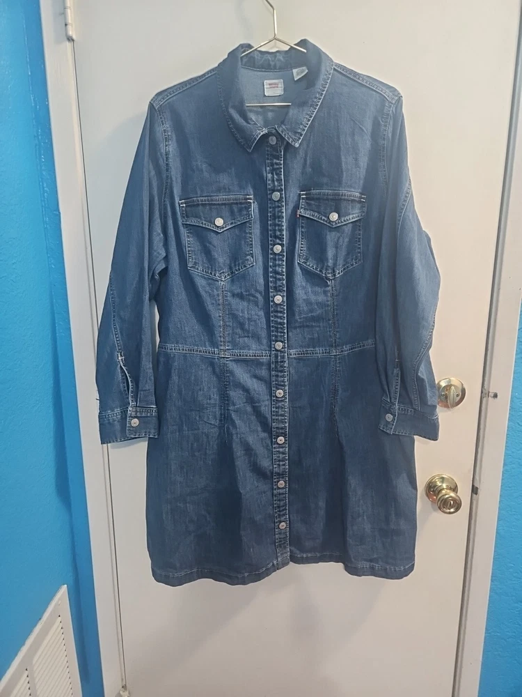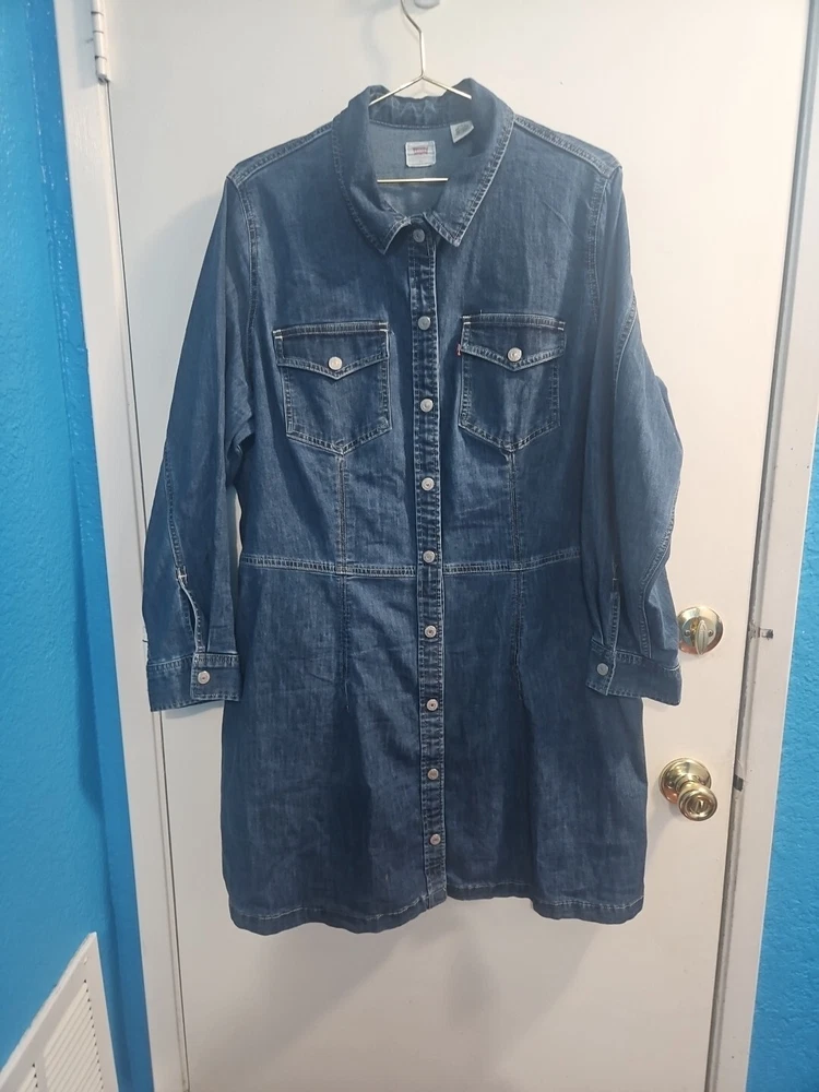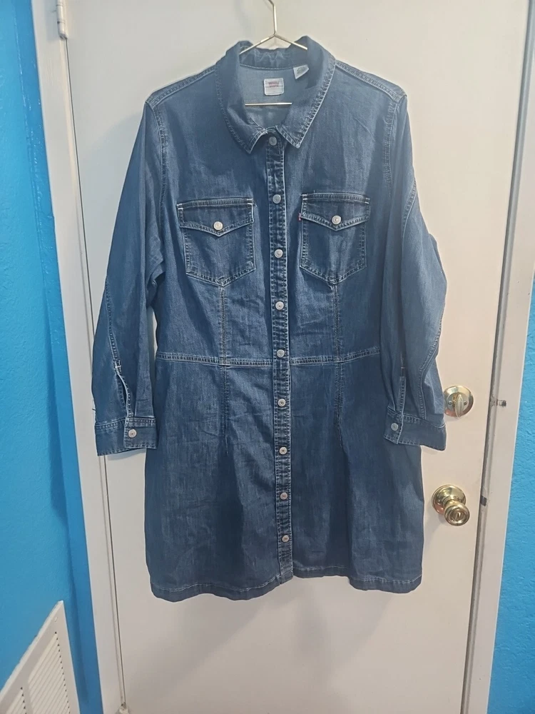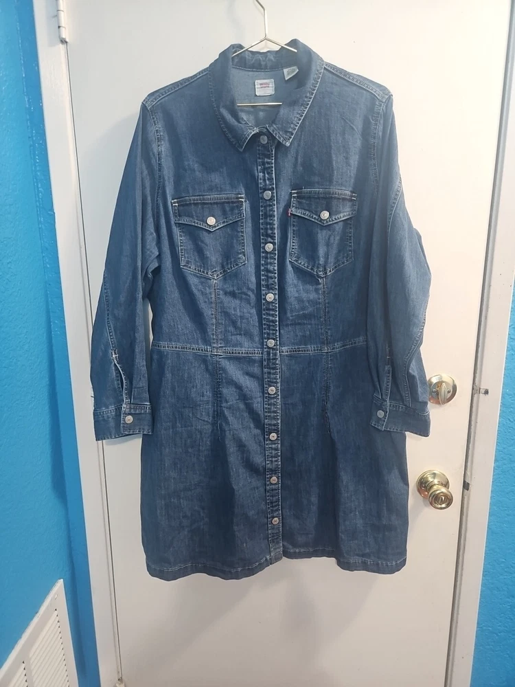Plus Size Women's Size 2x Denim Levi Dress. Please see pictures for measurements. It's in good used condition. Comes from a pet-free and smoke-free home.
