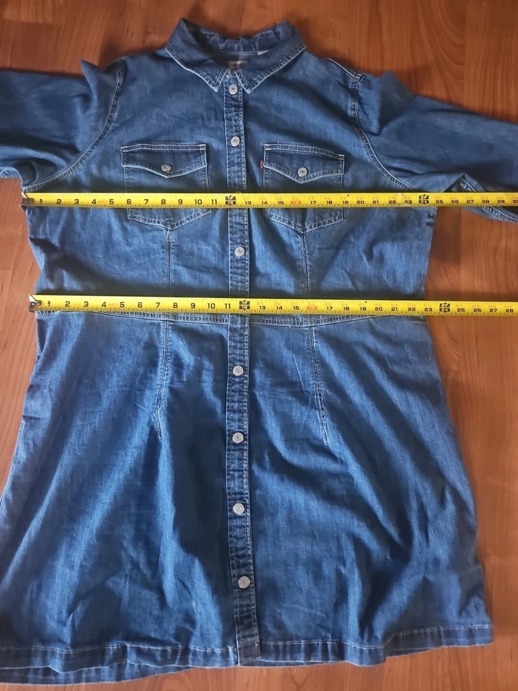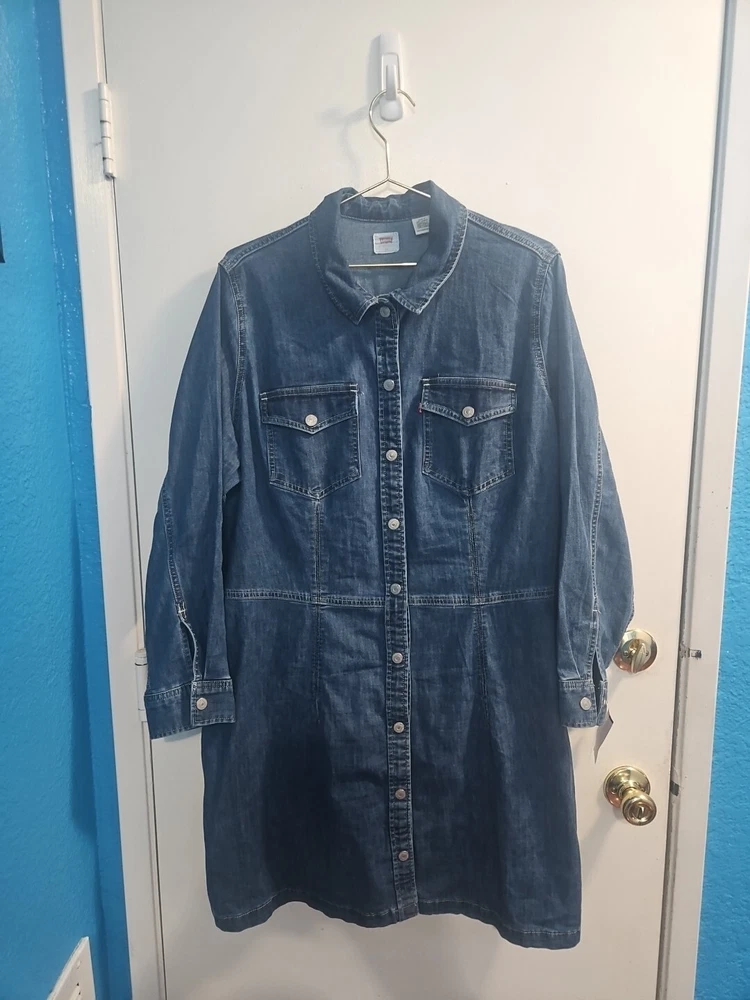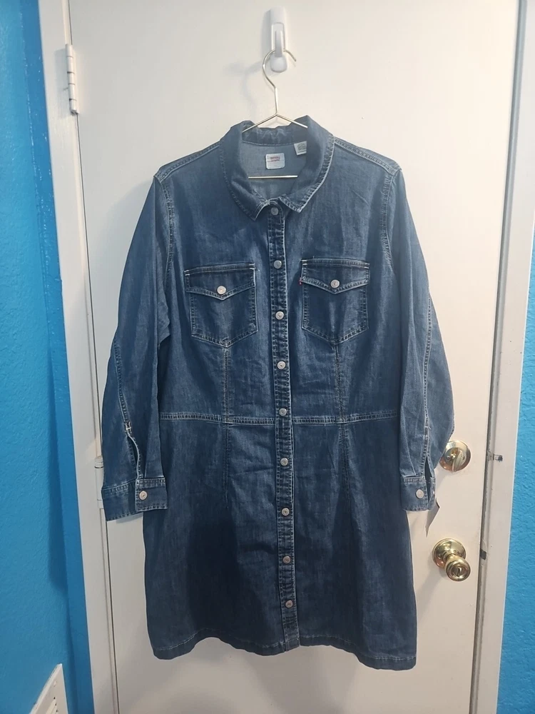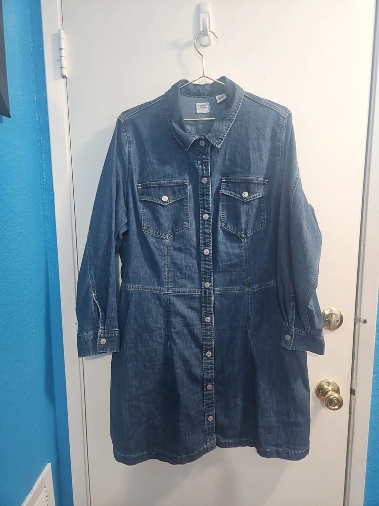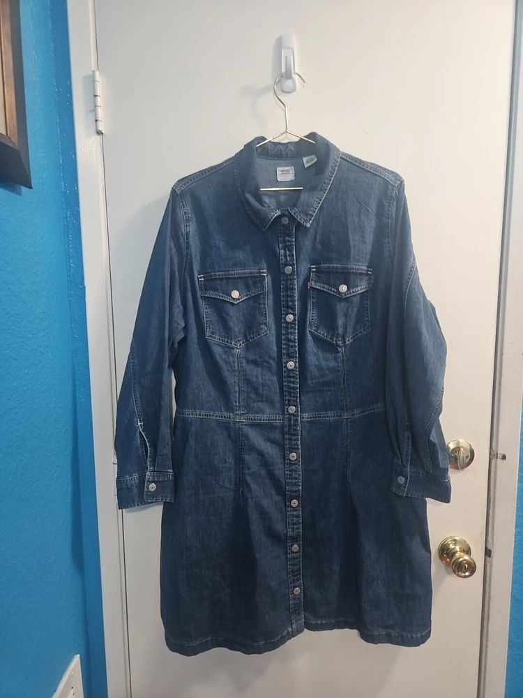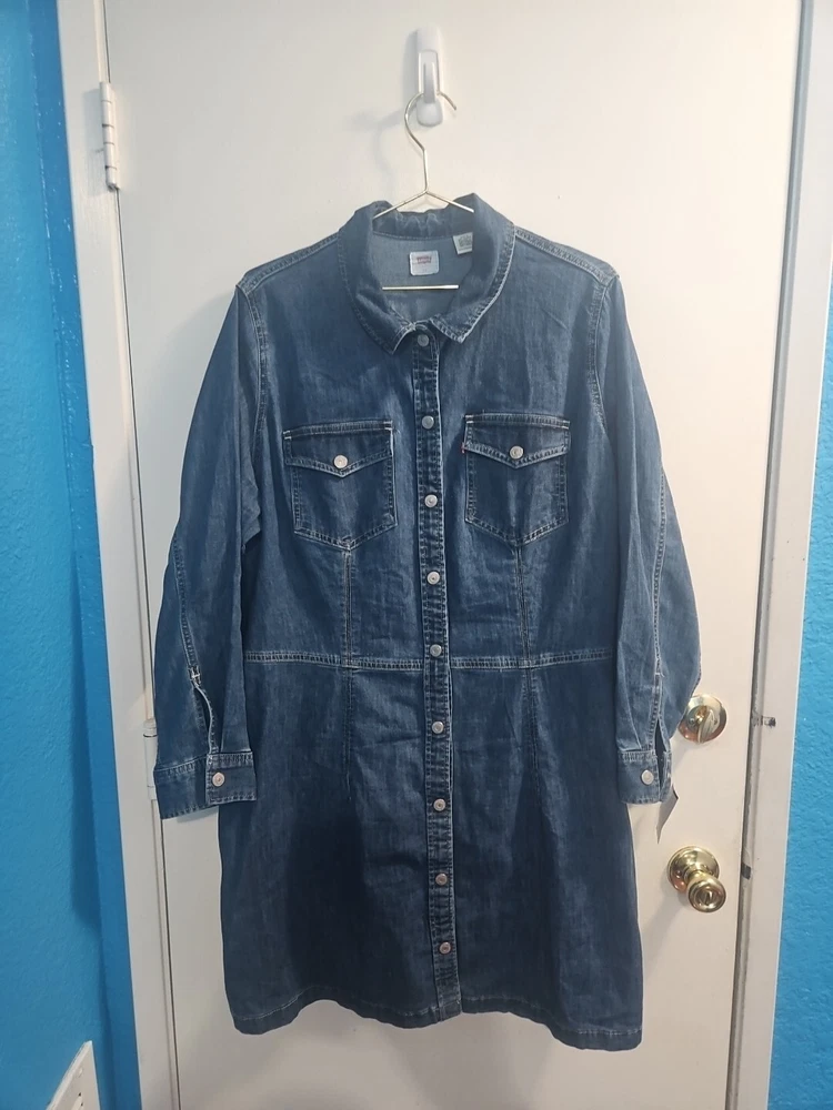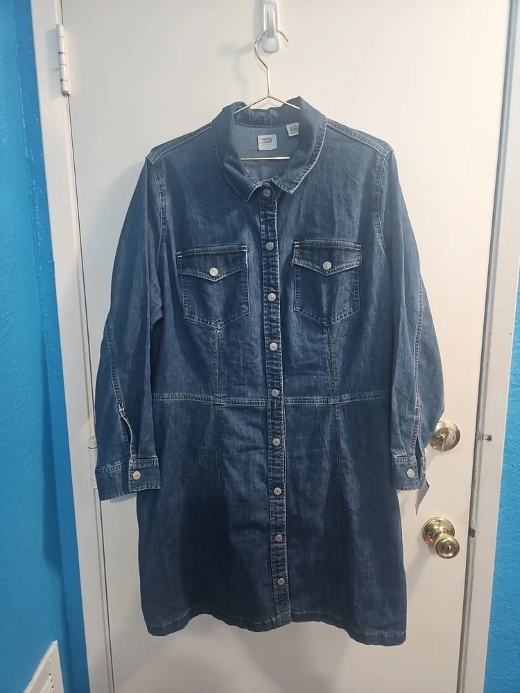 Plus Size Women's Size 2x Denim Levi Dress. Please see pictures for measurements. It's in good used condition. Comes from a pet-free and smoke-free home.