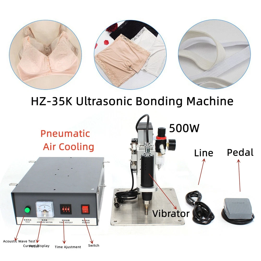 What's Included? Electric Control Box + Pneumatic Bracket + Foot Switch + Power Cord Weights & Dimesions ◆Net Weight: 15.3kg ◆Size: 410mm*350mm*320mm Features & Highlights 1. Convenient Operation 2. Easy Maintenance 3. Higher Efficiency 4. Strong Applicability Specifications ◆Output Power: 500w ◆Welding Head Stroke: 20mm ◆Control Method: Pedal Pneumatic ◆Purpose: Sewing Equipment ◆Input Voltage: 110v ◆Targets: Swimsuits, Underwear, Masks ◆Degree of Automation: Semi-automatic ◆Oscillation System: Self-excited ◆Power Form: Ultrasonic ◆Drive Form: Portable Switch ◆Lifting Control: Electric ◆Frequency: 35 (Hz) ◆Welding Area: 2mm-10mm Optional Die ◆Welding Principle: Butt Welding ◆Vibrating Head Cooling System: Air Cooling Pneumatic Welding Machine Ultrasonic Spot Welder Garment Welding Sewing 500W USA Product Description Packing List: Electric Control Box + Pneumatic Bracket + Foot Switch + Power Cord HZ-35K Ultrasonic Bonding Machine Manual Function: Suitable for brassiere, underwear, swimwear, shoe uppers and other two-layer fabric bonding points to save threads, improve product quality and efficiency. Another is also widely used in clothing, clothing, shoes, toys, leather goods, handbags, embroidery, glasses and other industries such as ironing diamonds and plastic welding processing. Note: The best workbench mat board with tiles (floor tiles, can not use a high degree of smooth floor tiles, will be slippery) or frosted glass as a mat board. Or with 2 cm thick stainless steel plate can also be, but the effect is not so good, because the metal plate absorbs heat quickly. Can not use a too thin metal plate to do the mat board. Product Parameters: ◆Net Weight: 15.3kg ◆Size: 410mm*350mm*320mm ◆Output Power: 500w ◆Welding Head Stroke: 20mm ◆Control Method: Pedal Pneumatic ◆Purpose: Sewing Equipment ◆Input Voltage: 110v ◆Targets: Swimsuits, Underwear, Masks ◆Degree of Automation: Semi-automatic ◆Oscillation System: Self-excited ◆Power Form: Ultrasonic ◆Drive Form: Portable Switch ◆Lifting Control: Electric ◆Frequency: 35 (Hz) ◆Welding Area: 2mm-10mm Optional Die ◆Welding Principle: Butt Welding ◆Vibrating Head Cooling System: Air Cool Features: 1. Convenient Operation 2. Easy Maintenance 3. Higher Efficiency 4. Strong Applicability Machine Shape Diagram Portable Ultrasonic Bonding Machine 1 Power switch 6 Start switch 2 Amplitude meter 7 Handle 3 Carrying handle 8 Vibrator 4 Fusing time 9 Die 5 Detection switch Maintenance Guidance Failure Cause Solution Output power is not enough Ammeter pointer is greater than 2A Oscillator burned out Oscillator connection line desoldering Adjust the copper screw to 3-5 small cells Replace the new oscillator Re-solder once Abnormal sound (screeching sound) Loose mold Re-lock, before locking the vibrator and mold contact surface wipe clean and then lock The handle has a burnt smell or sparks Oscillator connection line desoldering, loose connection, spark and burnt smell Oscillator burned out Re-weld once Replace the new oscillator Without ultrasonic output Pressing the handle switch does not have any response and then pressing the electrical box sound wave test output, indicates that the micro switch is bad Pressing 1 guide is still without response, which means that the connection line is broken somewhere or aerial plug in the desoldering phenomenon Replace the new microswitch Re-exchange the new connection line, re-solder the contacts in the air plug Handle hot (vibrator work will naturally generate heat, but can not be too high, generally in the 50 ℃ or so normal) The vibrator is the main accessory to produce ultrasonic waves, the chip produces ultrasonic sources, poor ventilation in the handle, the heat can not be dissipated, the chip can not work properly under high temperature, resulting in insufficient output power, and the current is large, burn the vibrator Stop working, heat dissipation and then work normally, or add ventilation cooling device (wind pump) Ammeter pointer is large The normal current in 3-5 small cells, must be kept within this data, otherwise the force has an impact Oscillator burned out Oscillator connection line is desoldered Keep the current in 3-5 small cells, adjust the copper screw Replace the oscillator Re-solder once Replace the new handle Pay attention to the current must be in 3-5 small cells It is still wrong after replacement Adjust the copper screw Electrical box and handle improperly matched, to professionals to match the motherboard Precautions, Common Sense and Routine Maintenance The welding head should not work directly with metal objects. The output force of the welding head is different for different types of shapes and sizes The output wire cannot be pulled with excessive force. The current is normally between 0.3 and 0.6 A at no load. FM screw set current at 0.3-0.6A when locked, can not be twisted at will (to ensure that the current is in the minimum position) Detect whether the no-load current is between 0.3-0.6A before work every day. The handle must be hung on the workbench so that it works vertically. Do not play freely outside the working period, and take care of the equipment. The greater the hand force, the greater the output force of the welding head, and vice versa if the hand force is small. When loading or unloading the die head, two opening wrenches must be used at the same time, one on the die head and one on the vibrator (the above action can be carried out only when the plastic nut of the handle is twisted loose and taken away first). Before installing the die head, wipe the face of the vibrator and die head clean, the screws should be locked in the die head and then locked with the vibrator, usually also pay attention to whether it has loosened. Do not collide and twist the handle with hard objects, which will break the handle and twist the wire. Check regularly whether the fan is functioning properly. For long-time use, the ha