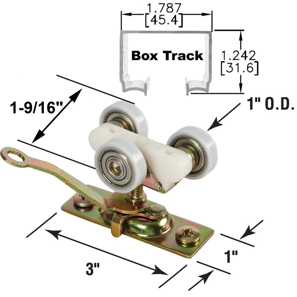 1 In. Flat Tri-Wheel Hanger: Each single hanger is equiped with three 1-inch O.D. nylon encapsulated ball bearing wheels. Not fit standard track, please check before purchase. Fits Part #1125 Hanger: Time to get rid of #1120 standard wheel door hangers and upgrade them with our durable ball bearing door hangers. Replaces #1500 Replacement Kit: Includes 2 top hangers, 2 door guides, 1 door stop, 1 wrench and 1 screw pack. Perfect replacement part set for 1500/100PD series pocket door frames. Commercial Grade Hardware Kit: Commercial grade (1-inch roller) with max. 200lbs weight capacity, not universal for most residential use (3/4-inch roller). Compatible With: 100, 134F, 138F, 2610F Series Track. These adjustable roller assemblies mount on the tops of pocket doors and has a 1-1/4-inch center to center.