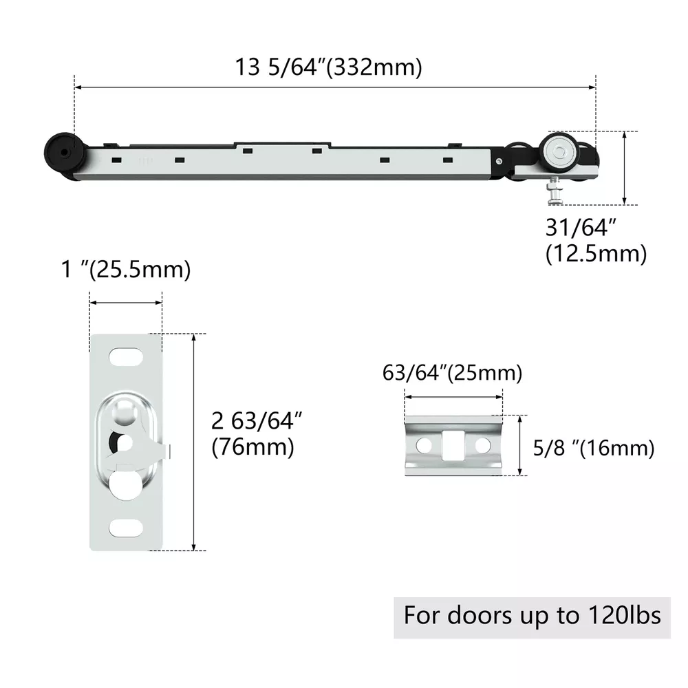 is a company that aims to create healthy, comfortable and exquisite spaces for global consumers by intelligently manufacturing quality products.Our factory has specialized in developing and manufacturing sliding doors and hardware kits for 15 years. Advanced Design: Only one soft-close mechanism is needed to achieve soft opening and closing. Keep Quiet: After installing the soft-close mechanism, the door will no longer hit the door jamb, making it quiet when you open and close door. Smooth Sliding: Three-wheel hanger ensure all wheels carry door weight equally, with heavy-duty ball-bearing offer minimum friction and smooth, quiet rolling. Specification: The length of the soft-close mechanism is 14.2", the width is 1.54" and the thickness is 1.78". Scope of Application: This soft-close mechanism can be installed in our Commercial Grade Pocket Door Hardware and Track Set, making it a soft-closing pocket door kit. Pay Attention: Please refer to the size picture for dimensions and compare with your needs before ordering. This roller is suitable for /BARNSMITH/EaseLife/SongYung/DIYHD pocket door kit and SMARTSTANDARD/TMS/EaseLife/DIYHD/COSHOMER/SongYung bypass sliding door hardware. We do not ensure compatibility with brands other than these.