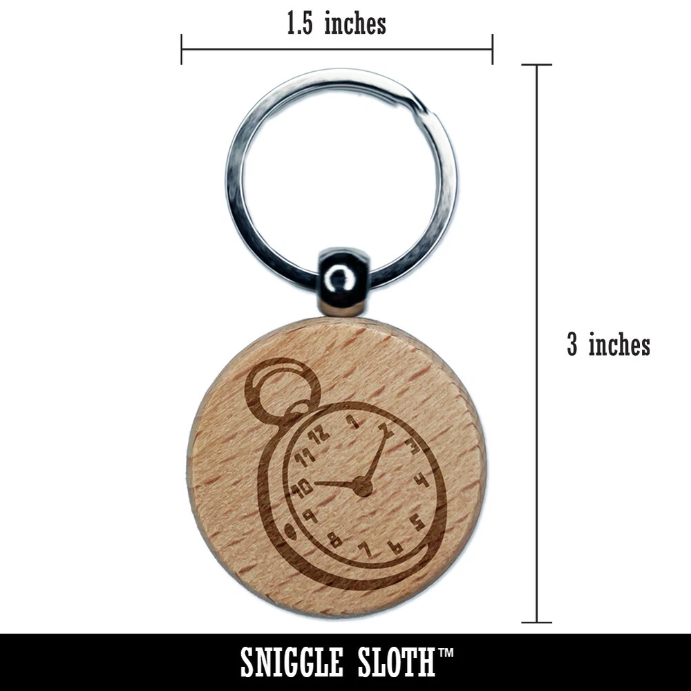 Pocket Watch Engraved Wood Round Keychain Tag Charm