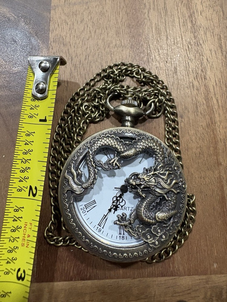 Pocket Watch Quartz Marine Corp Brass Mystical Asian Necklace Gift Old School