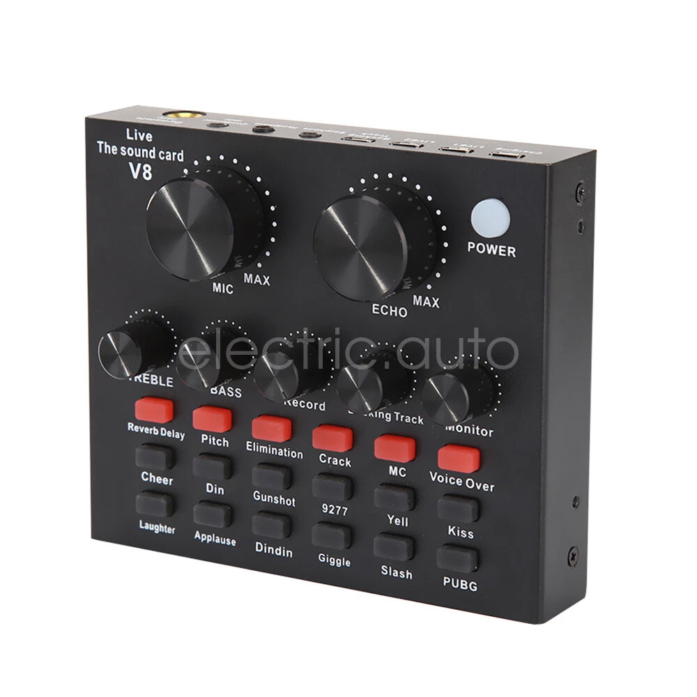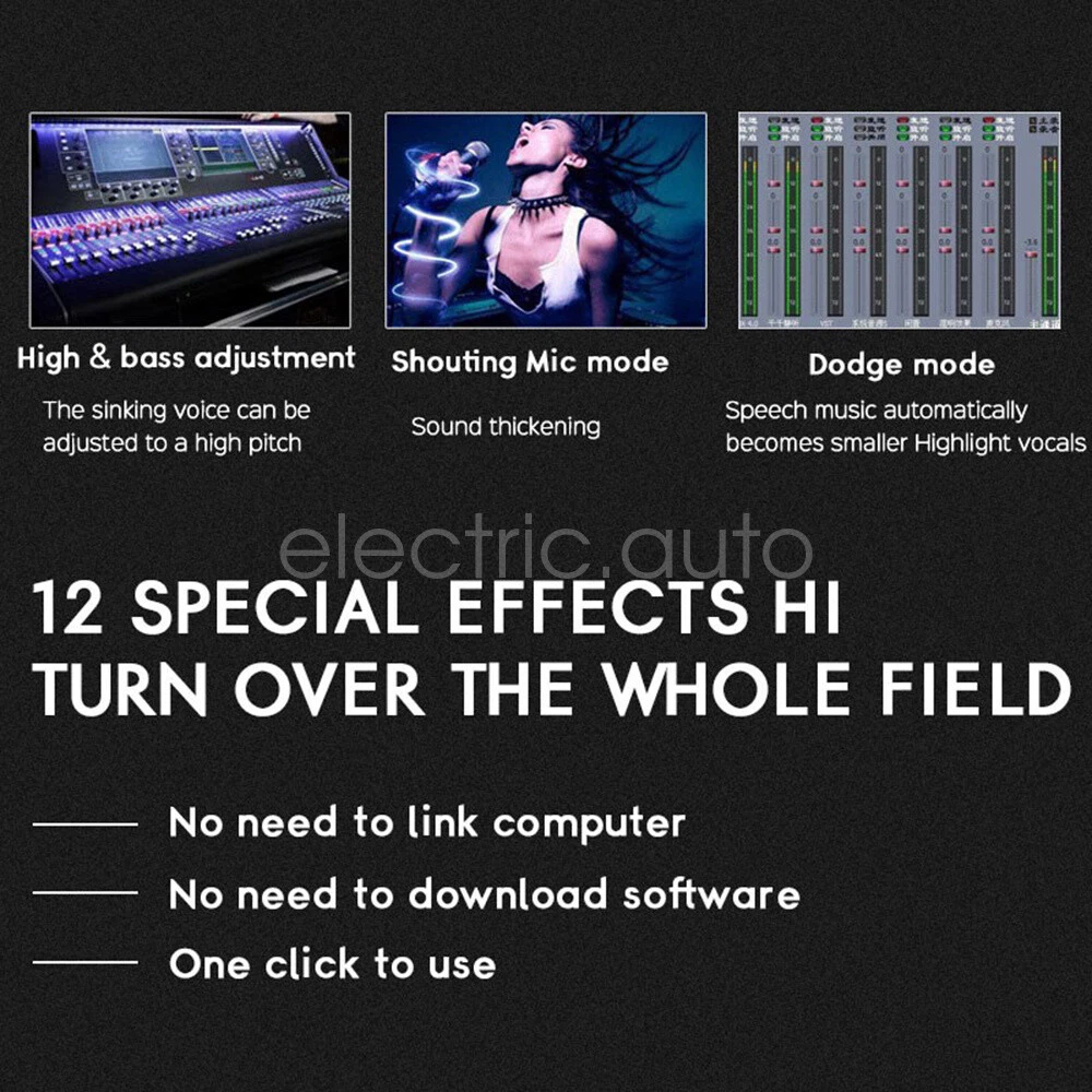 Home Arduino Module Sensor Chips About Us Features: 1. [Multi-sound] 112 kinds of electric sounds, 18 kinds of sound effects, 6 kinds of effect modes 2. [Multi-button control] Reverb size adjustment, microphone volume adjustment, treble and bass adjustment, recording volume control, music volume control, monitor volume control 3. [Multiple Connections] Support 4 devices and a cell phone Bluetooth connection, up to 5 devices can be connected to the sound card at the same time. 4. [HIFI chip] Built-in professional HIFI sound card chip, high-fidelity HIFI sound quality, excellent sound reproduction 5. [Capacitive diaphragm microphone core] Large microphone core diaphragm head with high sensitivity, accurately capture the human voice signal Specification: Frequency Response: 20Hz-20kHz Sensitivity: -34dB±2dB (OdB=1V/Pa at 1kHz) Output Impedance: 150Ω±30% (at 1kHz) Load Impedance: ≥1000Ω Equivalent noise level: 16dB A Maximum SPL: 132dB (at 1kHz ≤1% T.H.D) Audio Interface: XLR-3.5mm Signal-to-noise ratio: 78dB Current consumption: 3mA Stand size: 35cm*35cm Sound card: V8 sound card Bluetooth version Lithium battery power: 1000mAh Packing list: 1x Microphone 1x Microphone stand 1x Shockproof stand 1x Anti-spray net 1x sponge cover 1x microphone power cord 1x usb power cable 2x audio cable 1x Sound Card Payment Shipping Refund Payment We accept PayPal only. But we only Accept your Ebay Address ,Please Make sure it's 100% right. Payment must be received in 5 business days of auction closing. Please leave note for your special request (e.g. Colors or Size) in PayPal when you pay the order. Any special request cannot be accepted after 24 hours of payment, because most of orders will be processed instantly and same day dispatched. Shipping Fill your shipping info Refund All package need to wait 30 days (US only n eed 7-10 days) , Please take care it.Less than 30 days,we can't take a refund . If the item is defect when you receive it or you are not satisfied with it, please return it within 14 days for a replacement or money back. But the items must be back in factory condition. Please contact us and double check the return address before you return it. If is item is defective in 12 months, you can return it to us. We will send you a new replacement after receiving the defective item.