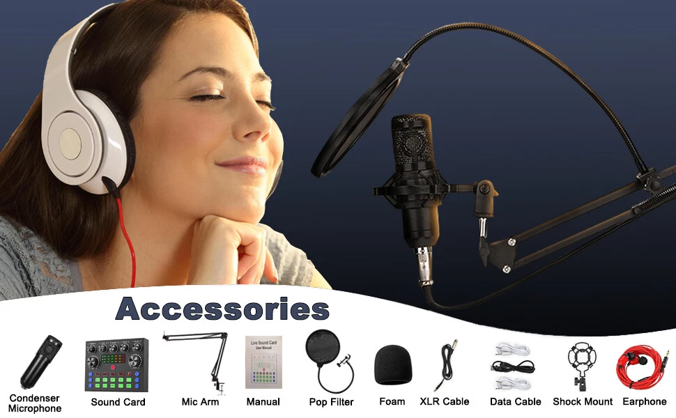 Welcome to NewBeeGoodsfeedback |contact us LocationUnited StatesHoursOpen 24/7SupportFeel free to Contact us ElectronicsMotors SuppliesHome & GardenPet SuppliesBusiness & Industrial NewbeegoodsUSD 58.89Podcast Equipment Bundle Recording Studio kit Audio Interface & All-in-One MixerDescription:The BM800 high-performance microphones are designed to deliver clear, high-quality sound for memorable recordings. It can deliver warm, clear bass, detailed midrange, and a silky high end. It is ideal for vocals, musical instruments, podcasting, voiceovers, interviews, field recordings. Suitable for studios, recording studios, broadcasting stations, personal broadcast, adage performance and computers. Specification:Material: Metal + PlasticColor: BlackPower supply (adapter): DC 5V/1A Battery: 3.7V / 800 mah (Battery life of approx. 5 hours with amplifier on)Power indicator (LED): Power on: white light; Charging: red light; Low battery status: Beep 2 minutes/timesCharging time: about 2 hours (power off) Sound card function: Yes Built-in battery: Yes Low Power Indication: Yes (Beep) Sound Adjustment: Yes Function keys: 5 Sound effect keys: 7 Special effects keys: 10 Connector Type: TYPE-CAccompaniment input: 1 way (3.5 port) Condenser Mic Input: 2 way (3.5 port) Headphone Output: 1 way (3.5 port) Live broadcast interface: 2 way (3.5 port) OTG interface: 1 way (TYPE-C port)Analog Audio Output: LT/RT, Stereo Dynamic Range 1kHz: ≧105dB Crosstalk: ≧-106dB Signal-to-Noise Ratio: ≧85dB Output Level(Vrms): Vrms(1.0~2.0V 10kR) Frequency Response: 5MHz( On Jun 22, 2024 at 06:25:38 PDT, seller added the following information: On Nov 29, 2024 at 06:11:28 PST, seller added the following information:
