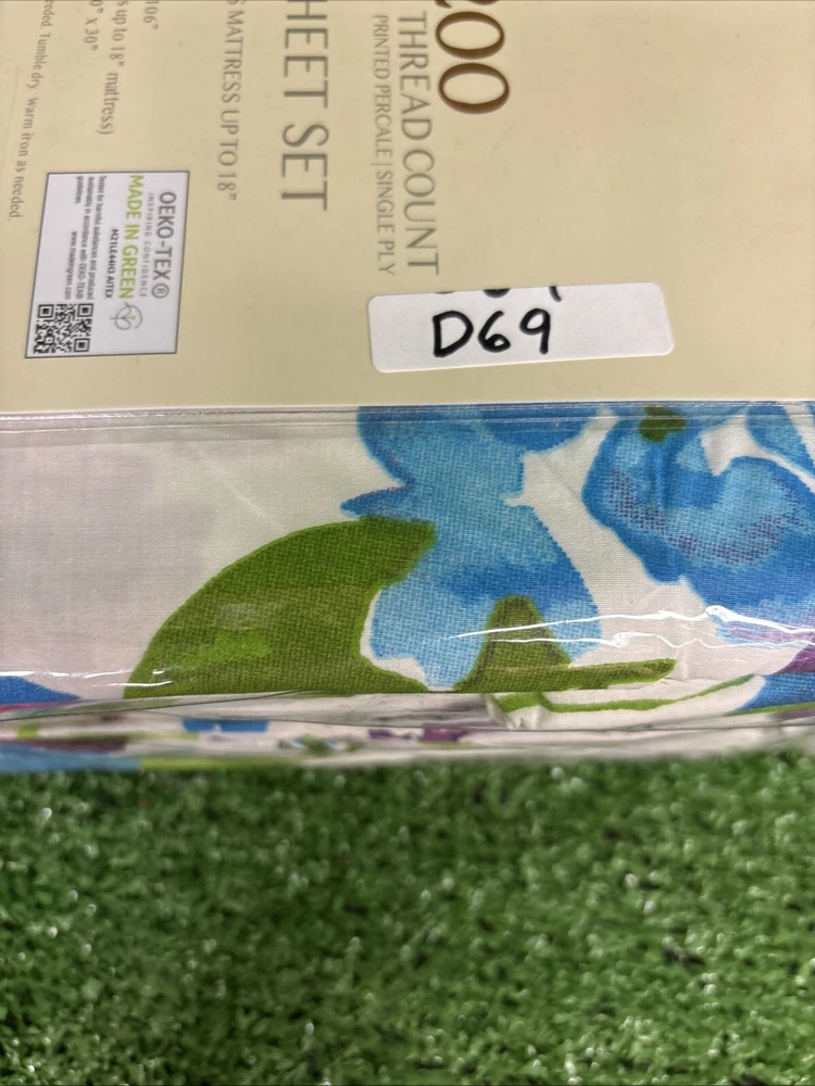Pointehaven presents a casual style 4-piece Queen Sheet Set with a 200 thread count. The set includes a Queen size flat sheet, fitted sheet, and two standard pillowcases. Made with non-applicable material in a multicolor design, this set is ideal for the bedroom. The Item Width is for a Twin size bed. Listed by-kh Date-1/21/25 Shade/size-blue/purple/white queen Condition-nwt SKU-d69