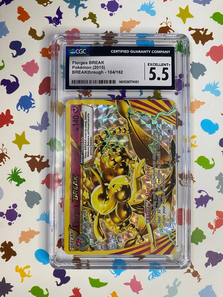 You’ll get one Pokémon card. Florges BREAK. 104/162 in excellent conditions…🍀 plus some free stuff…🍀🍀 free shipping on all graded cards and combine shipping for multiple orders…🍀🤙🏻🍀🤙🏻