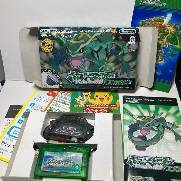 Pokémon Emerald (Rayquaza Version) - Game Boy Advance - Complete w/map Japanese From Japan Description Thank you for your visiting my store. Experience the thrilling adventures of the Pokémon world with this complete set of Pokémon Emerald (Rayquaza Version) for Nintendo Game Boy Advance. This game offers an exciting combination of battle and role-playing gameplay, allowing you to embark on an epic journey to become a Pokémon master. With its rare features, manual included, map included, joy spot instructions manual, and retro design, this game is a must-have for collectors and Pokémon fans alike. The set comes boxed and with promotional leaflets from the time of release, making it a great addition to any collection. Don't miss out on the chance to own this classic game and relive the excitement of catching 'em all! If you have any questions about the condition, please ask me. Shipping Economy Shipping(Japan post) The package will arrive 2~3weeks after shipment . Expedited Shipping (Fedex,DHL) The package will arrive 4~7 days after shipment. I nternational Buyers - Please Note: Import duties, taxes, and charges are not included in the item price or shipping cost. These charges are the buyer's responsibility. Please check with your country's customs office to determine what these additional costs will be prior to bidding or buying. If the cancellation is due to the buyer, we will charge a PayPal fee. If there is a remote charge for your address, we will charge you for additional shipping. Thank you for your understanding. kyotoxxiv is registered store in Kyoto,Japan. We deal in japanese items;retro games, trading card games and others.