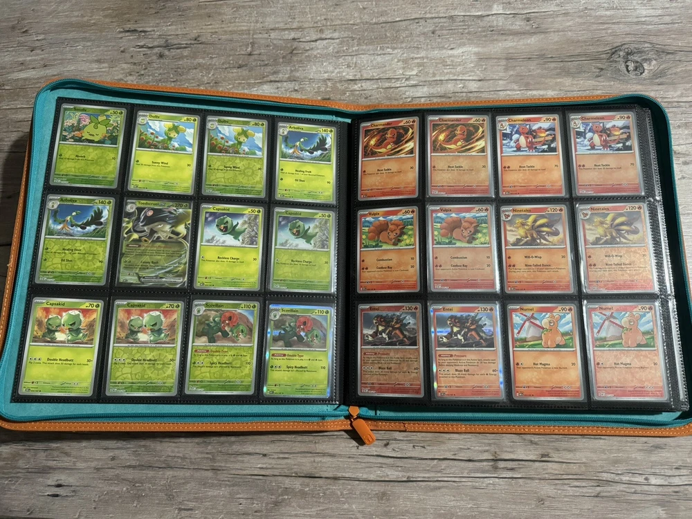 This is a 100% complete adult owned NM mint master set of obsidian flames ! All cards are in excellent condition and are in sleeves . This set has all the reverse Holo version as well as the non Holo version ! It’s all in the custom vault binder made for this set ! By far the best master set I have seen listed. Thanks and be sure to check my other listings for more !