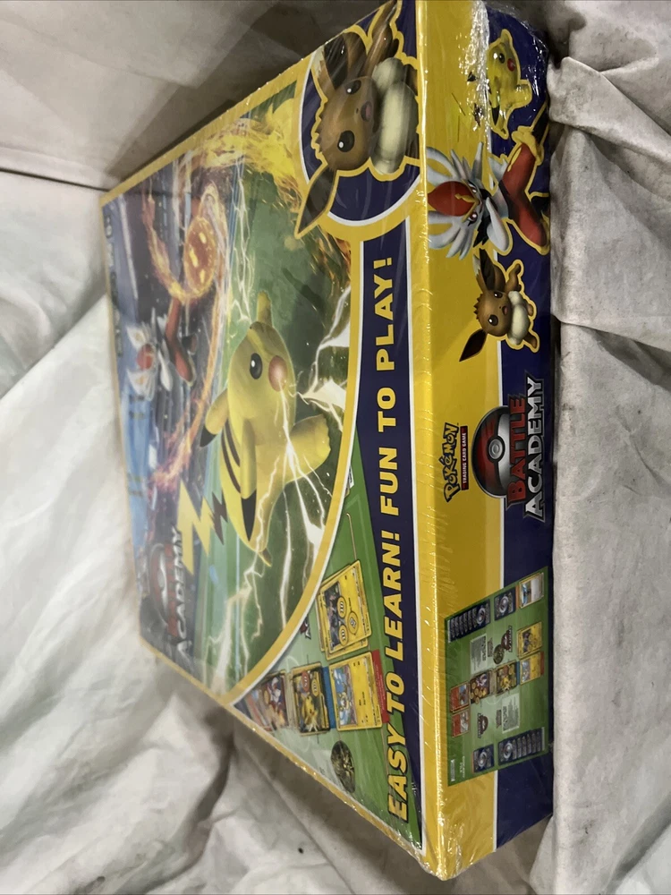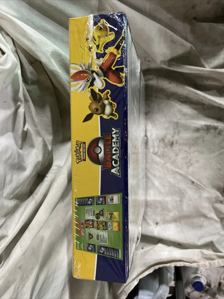 This Pokémon TCG Battle Academy box is factory sealed and ready for you to open. The set includes standard-sized cards made of high-quality card stock material. The box features English language cards and is configured for one box. The set is perfect for collectors and players of all ages, with a 6+ age level recommendation. The Pokémon League convention/event and United States country/region of manufacture add to the uniqueness of this item. Get ready to battle with this Pokémon TCG set, perfect for anyone who loves the game.