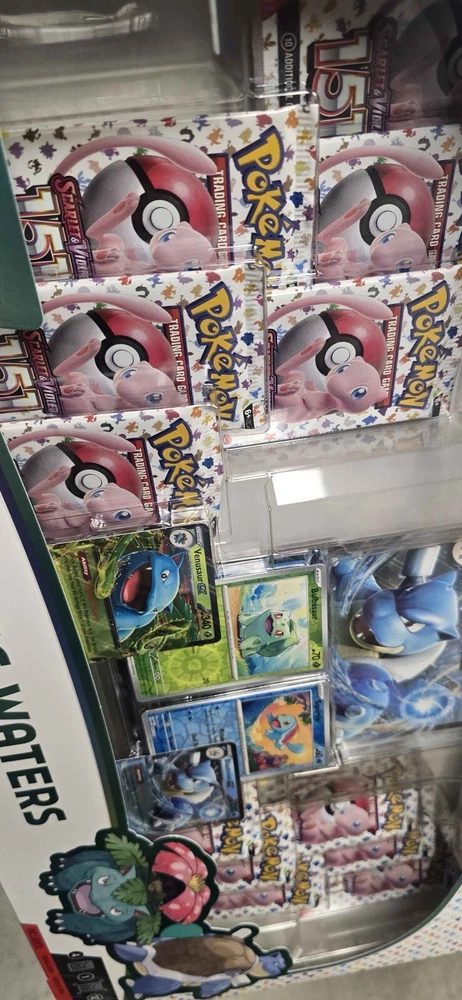 Character:Blastoise, Charizard, VenusaurCountry/Region of Manufacture:United StatesAutographed:NoMaterial:PaperLanguage:EnglishGame:Pokémon TCGFeatures:Booster, Box Topper, PromoIllustrator:The Pokémon Company Art-teamSet:Scarlet & VioletVintage:NoConfiguration:BoxNumber of Boxes:1Age Level:6+Year Manufactured:2024Card Size:StandardManufacturer:Nintendo