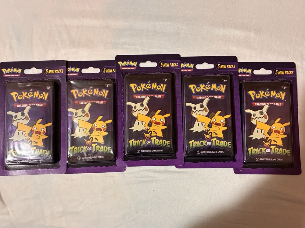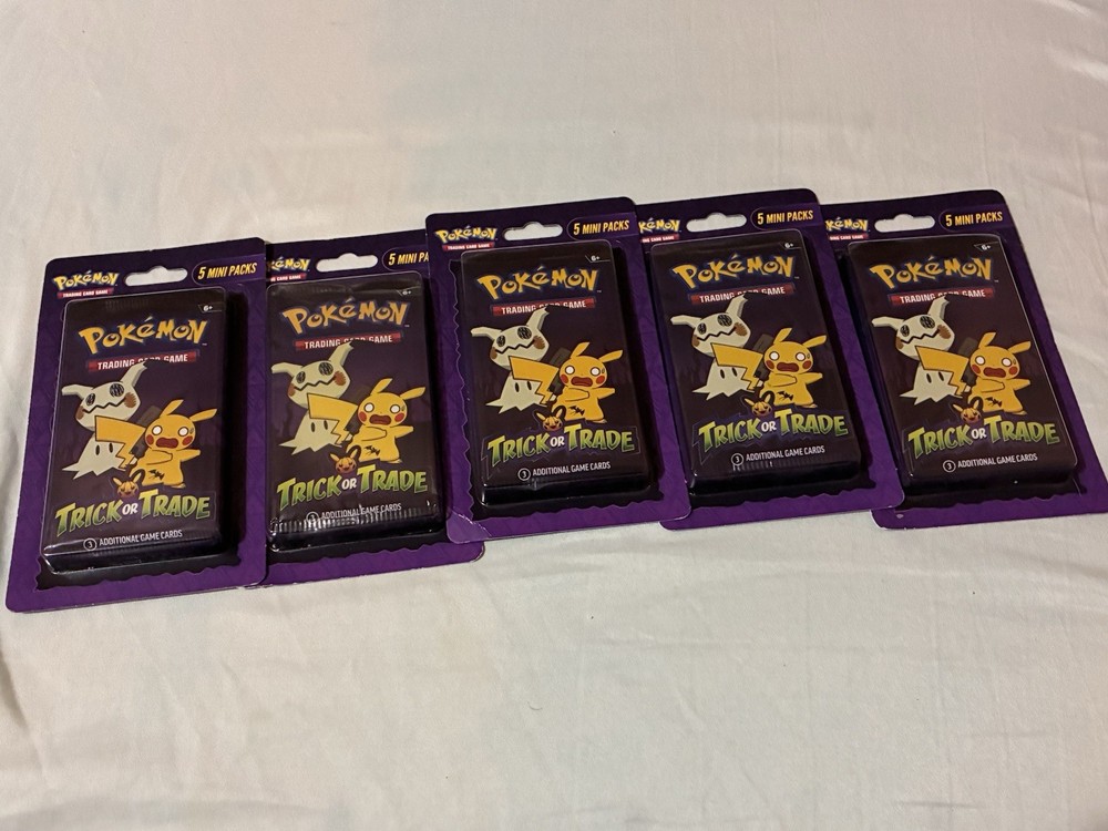 You are bidding on a Lot of 5 sealed Pokémon Trick-or-Trade BOOster Bundle 5-Pack Blisters. Each blister contains 5 mini packs (25 packs total). All items come factory sealed, stored safety.